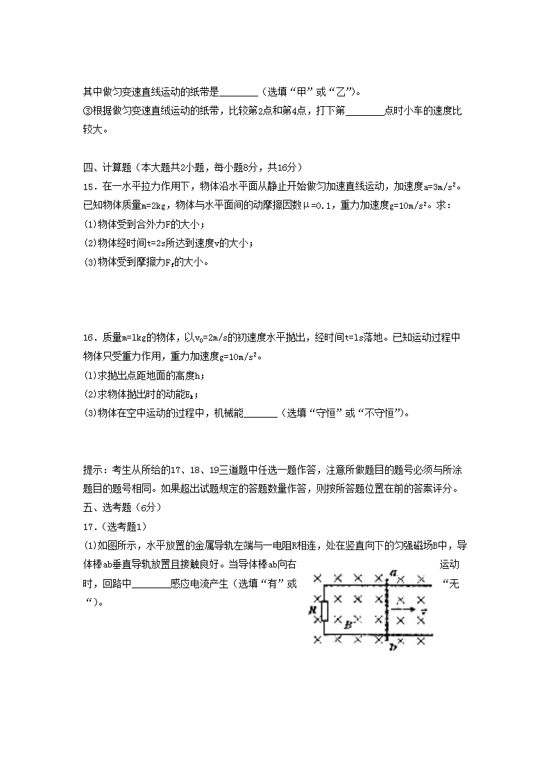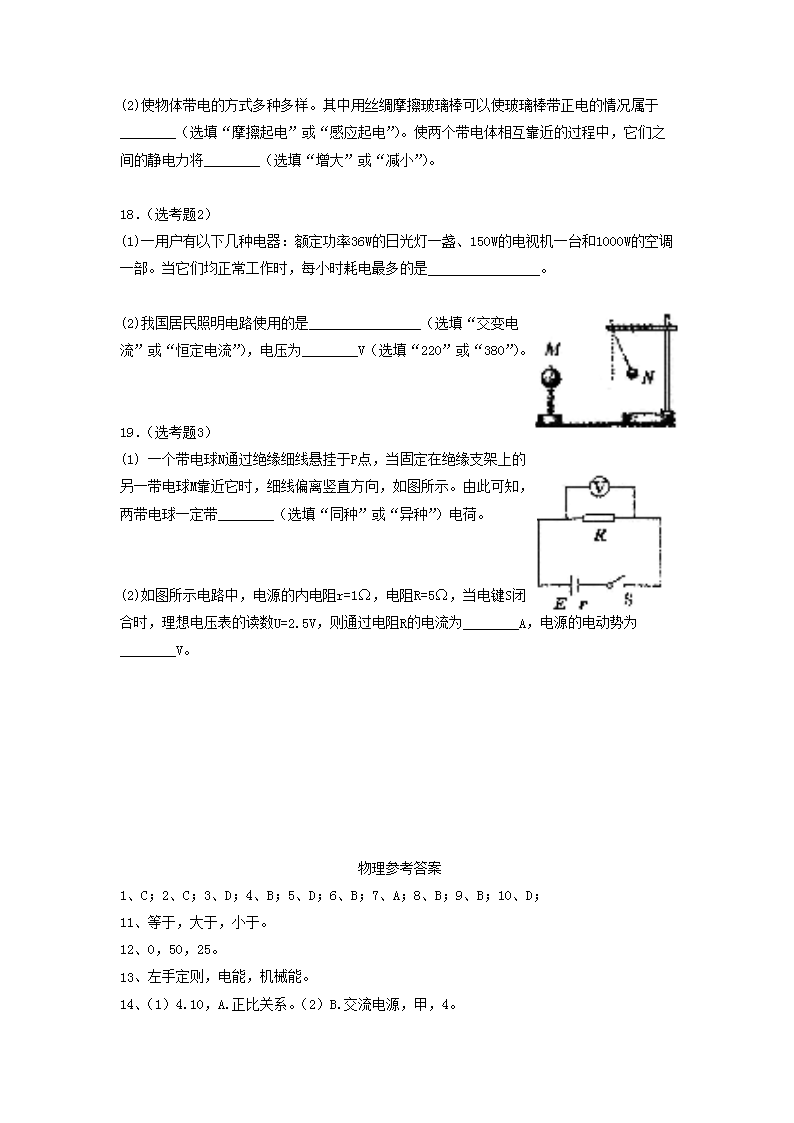 【文档名称】 2013年海南普通高中会考物理真题及答案(Word版).doc