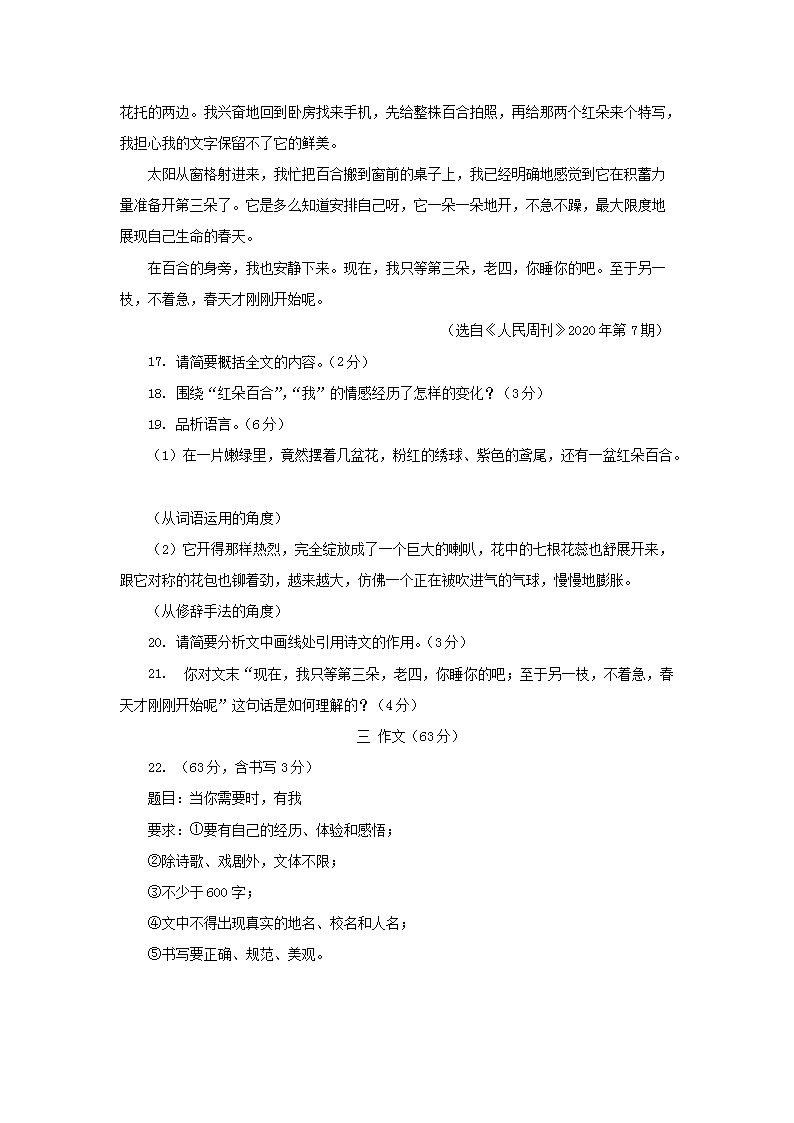 【文档预览】 无忧考网整理发布2020年江苏徐州中考语文真题及答案(Word版),前五页预览如下: