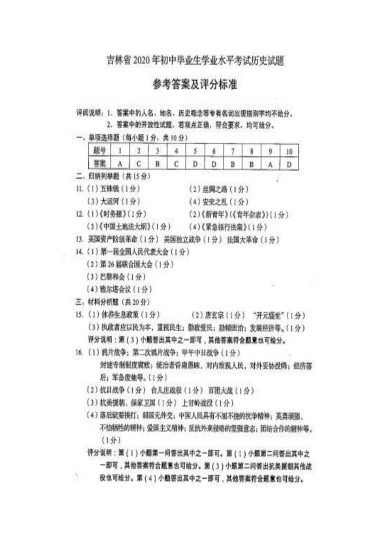 【文档名称】 2020年吉林吉林中考历史真题及答案(图片版).doc