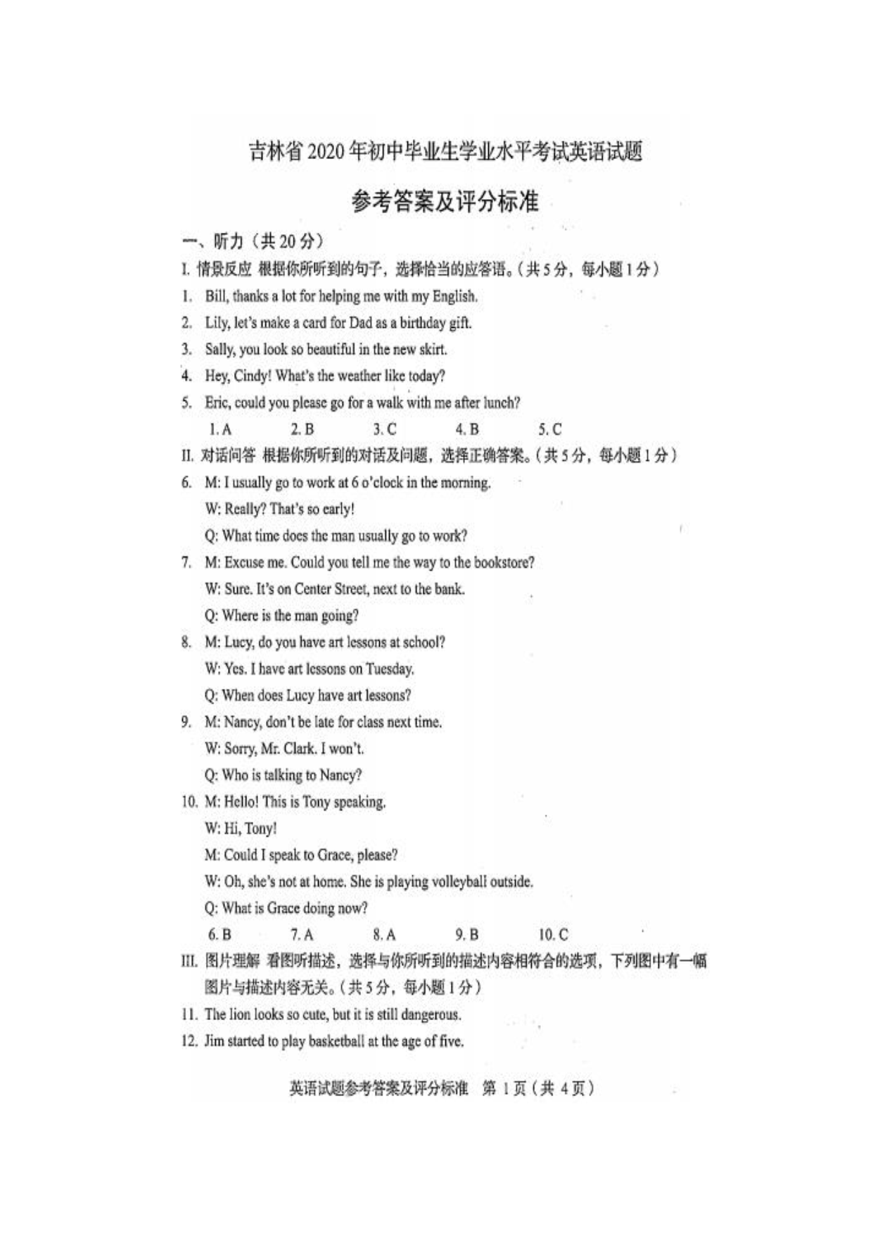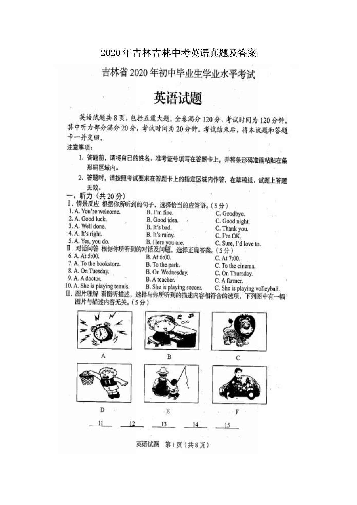【文档名称】 2020年吉林吉林中考英语真题及答案(图片版).doc