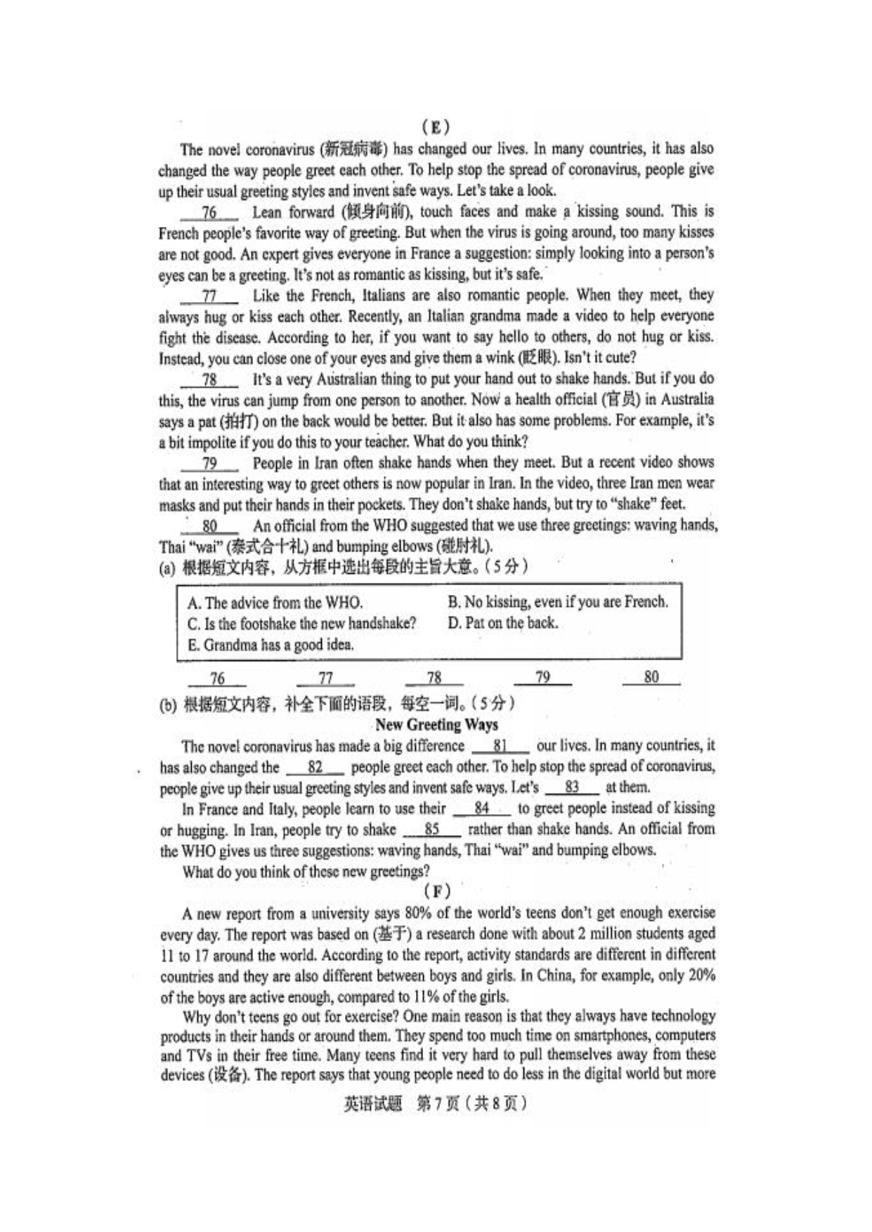 【文档预览】 无忧考网整理发布2020年吉林吉林中考英语真题及答案(图片版),前五页预览如下: