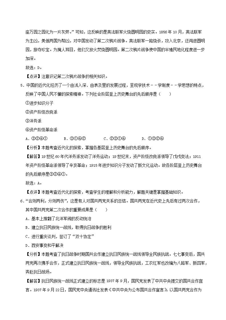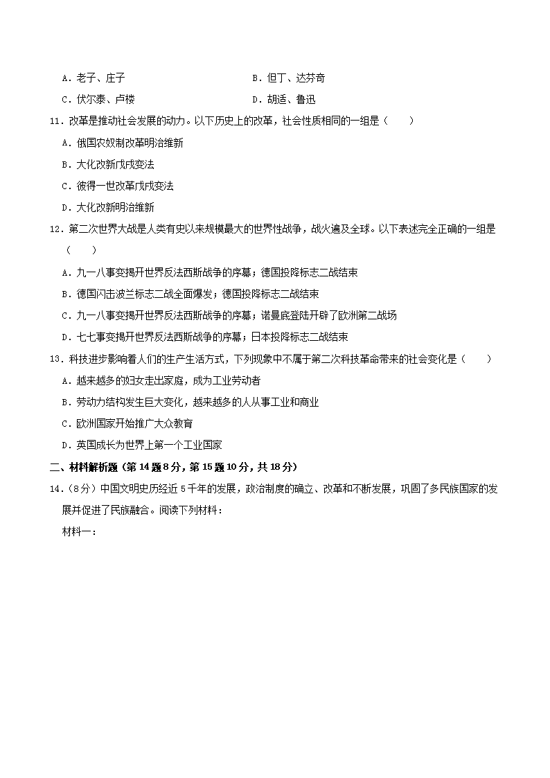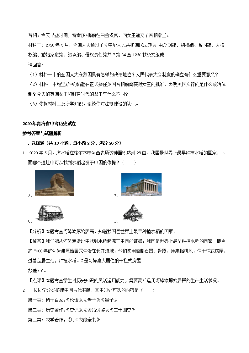 【文档名称】 2020年青海海北中考历史试题及答案(Word版).doc