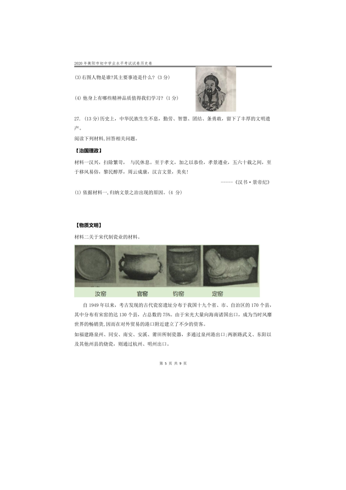 【文档预览】 无忧考网整理发布2020年湖南衡阳中考历史试题及答案(图片版),前五页预览如下: