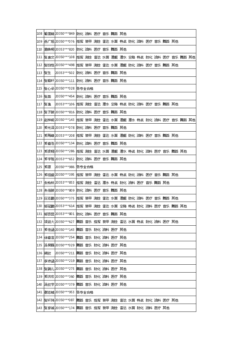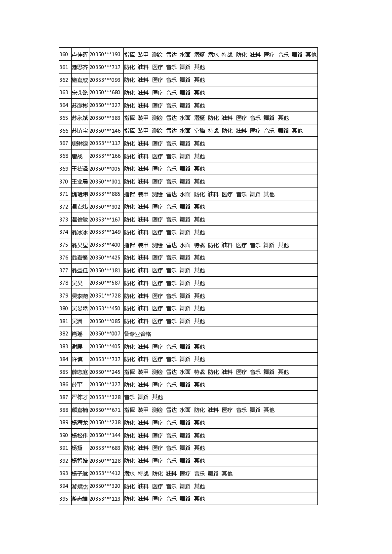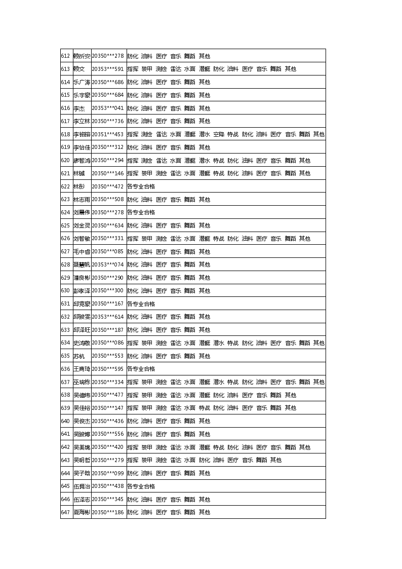 2020年福建军队院校招生体检合格考生最终名单
