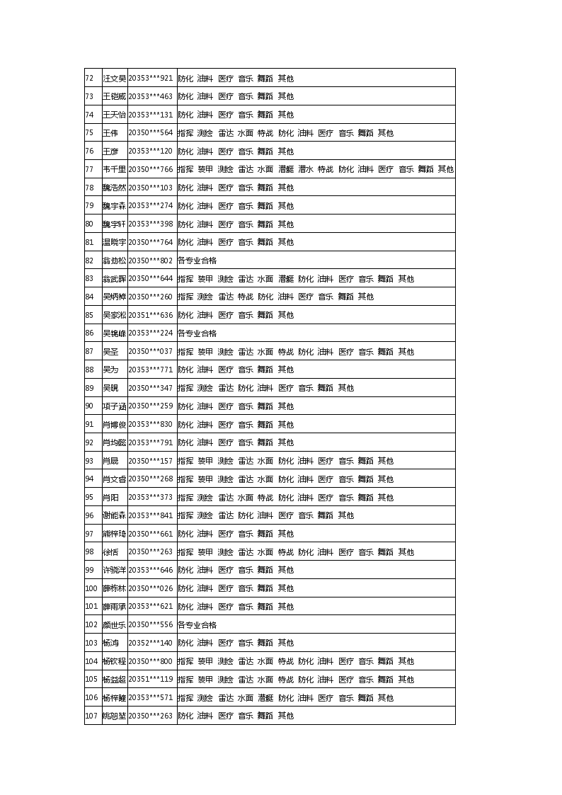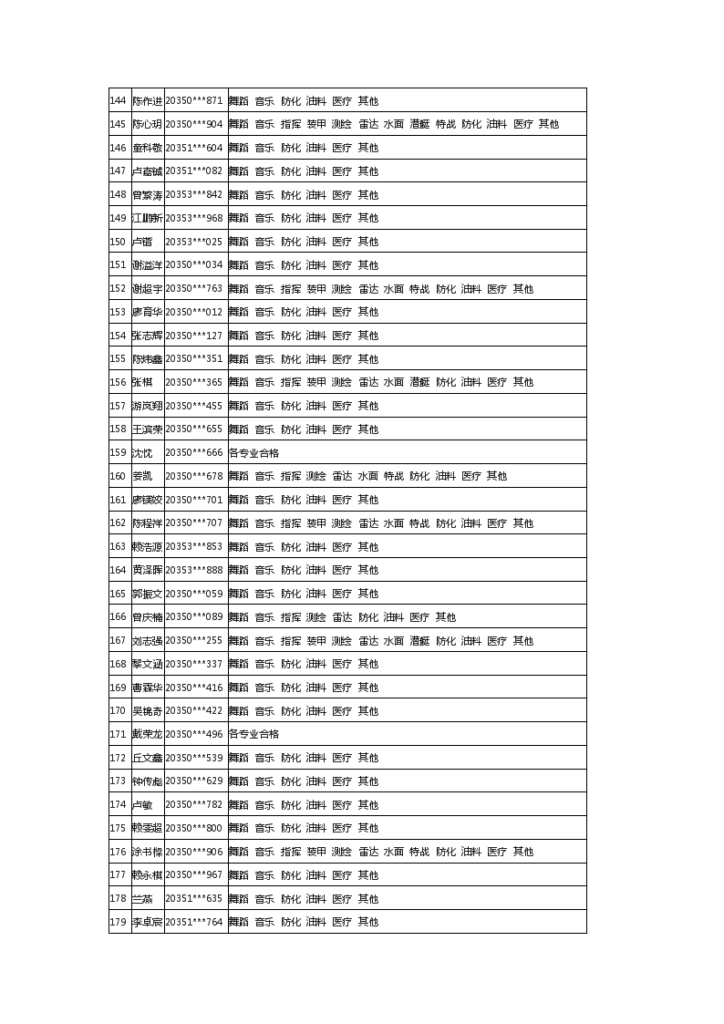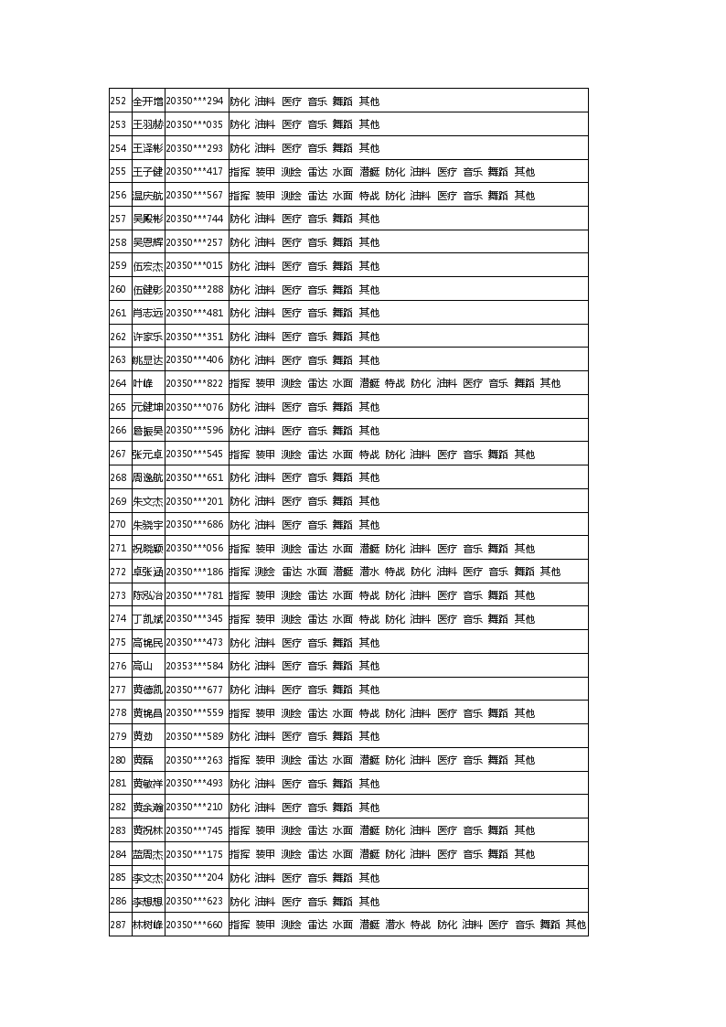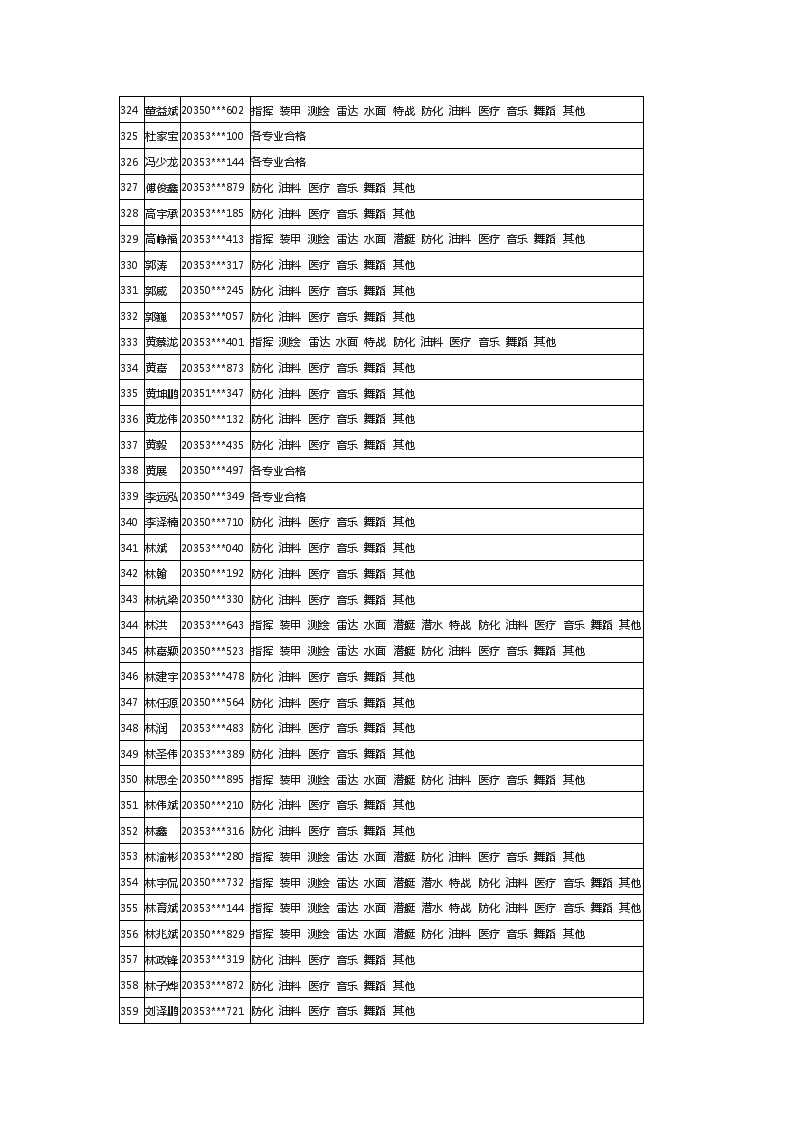 2020年福建军队院校招生体检合格考生最终名单