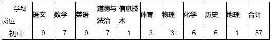 计划选拔高中段教师27人,初中教师57人,小学教师50人,学前教师8人。(县城初中和小学如有被选拔到高中学校任教的,则相应增加被选拔人所在学校相应学科岗位数量)。