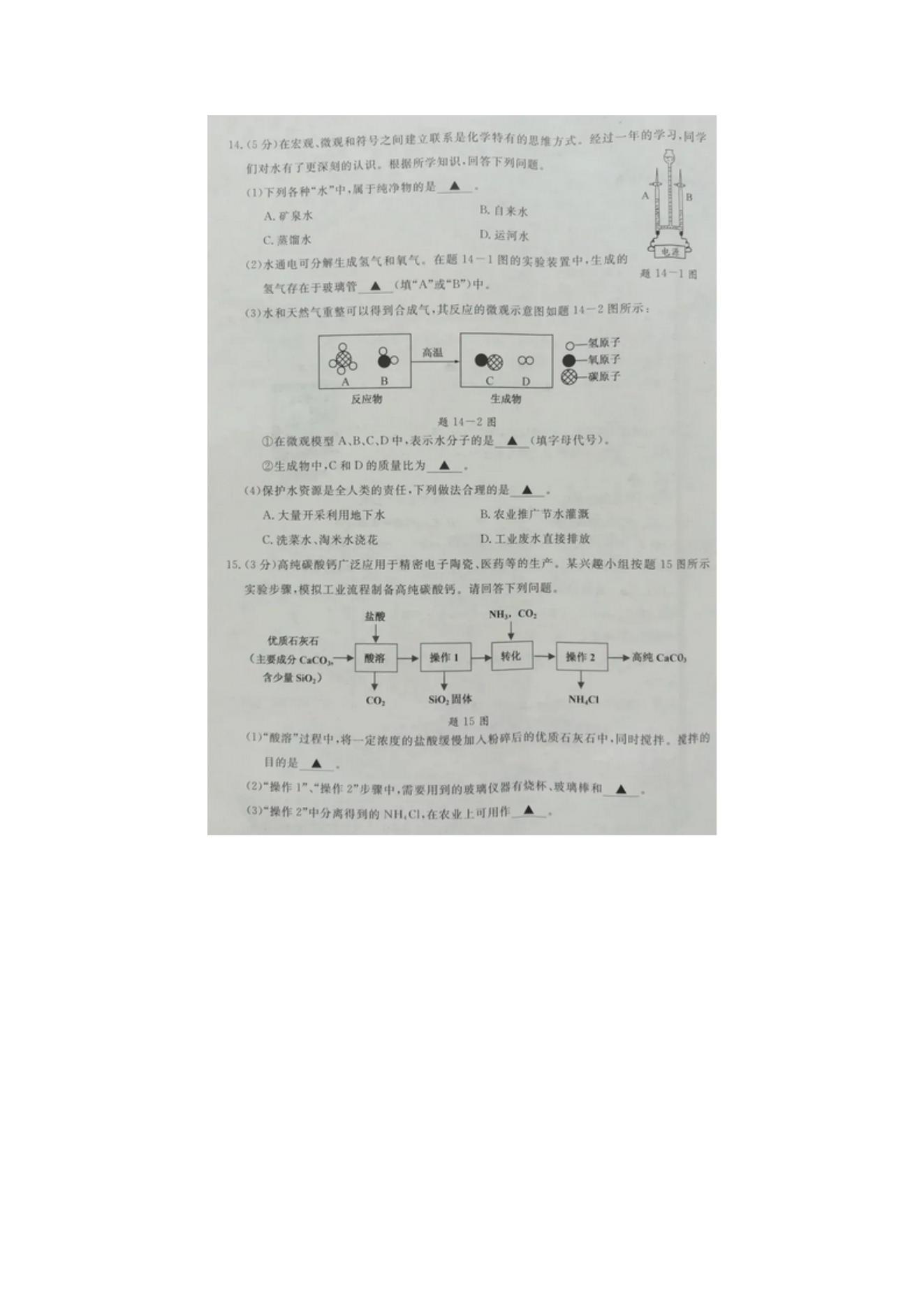 【文档名称】 2020年江苏淮安中考化学真题及答案(图片版).doc