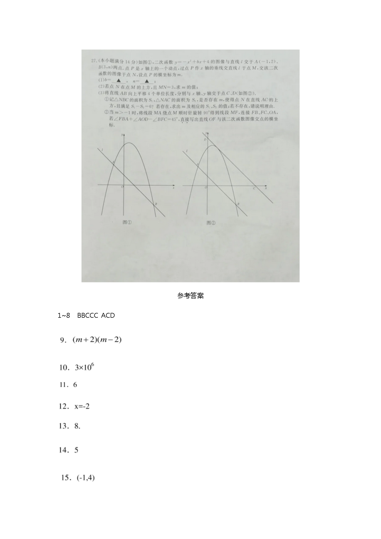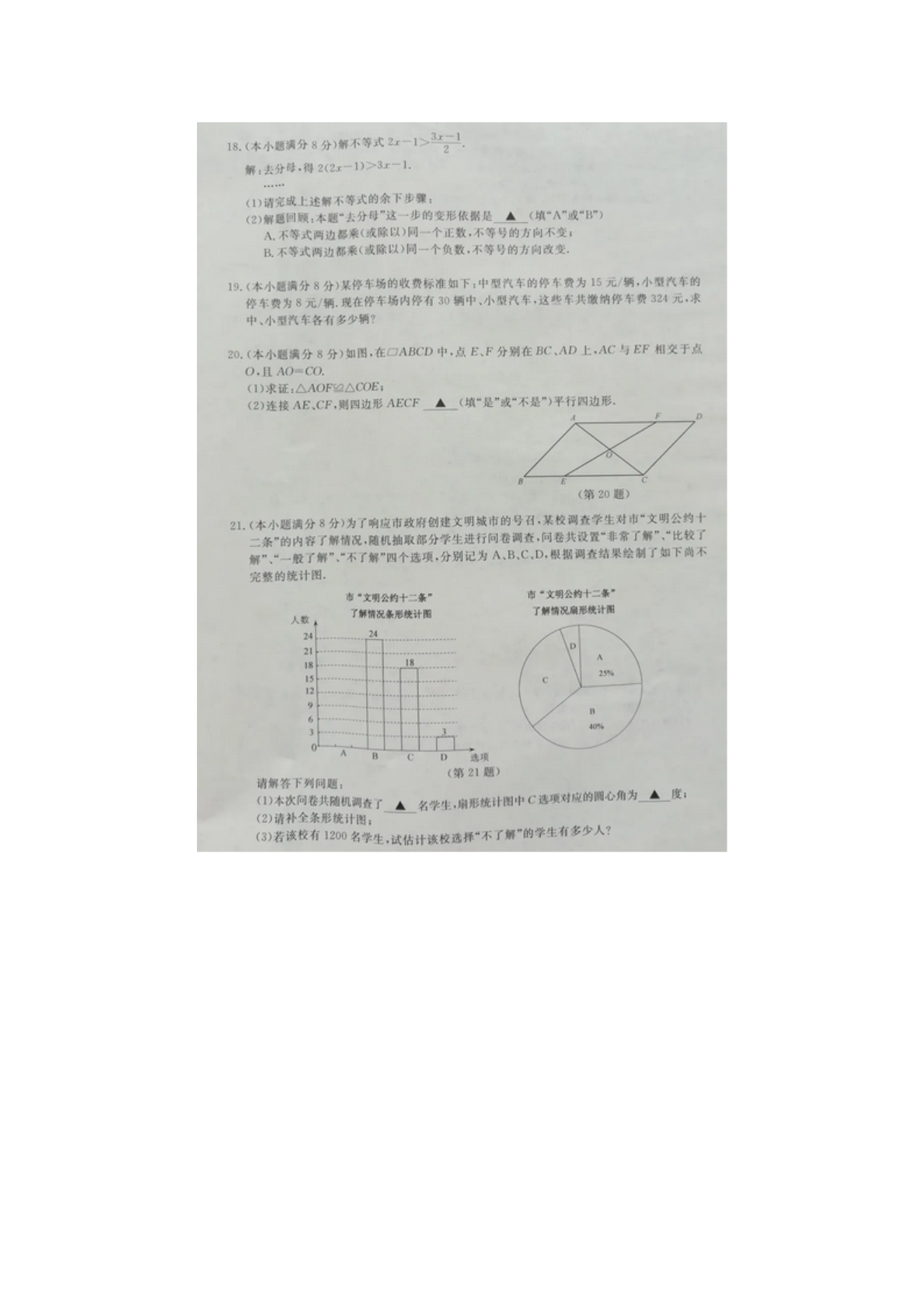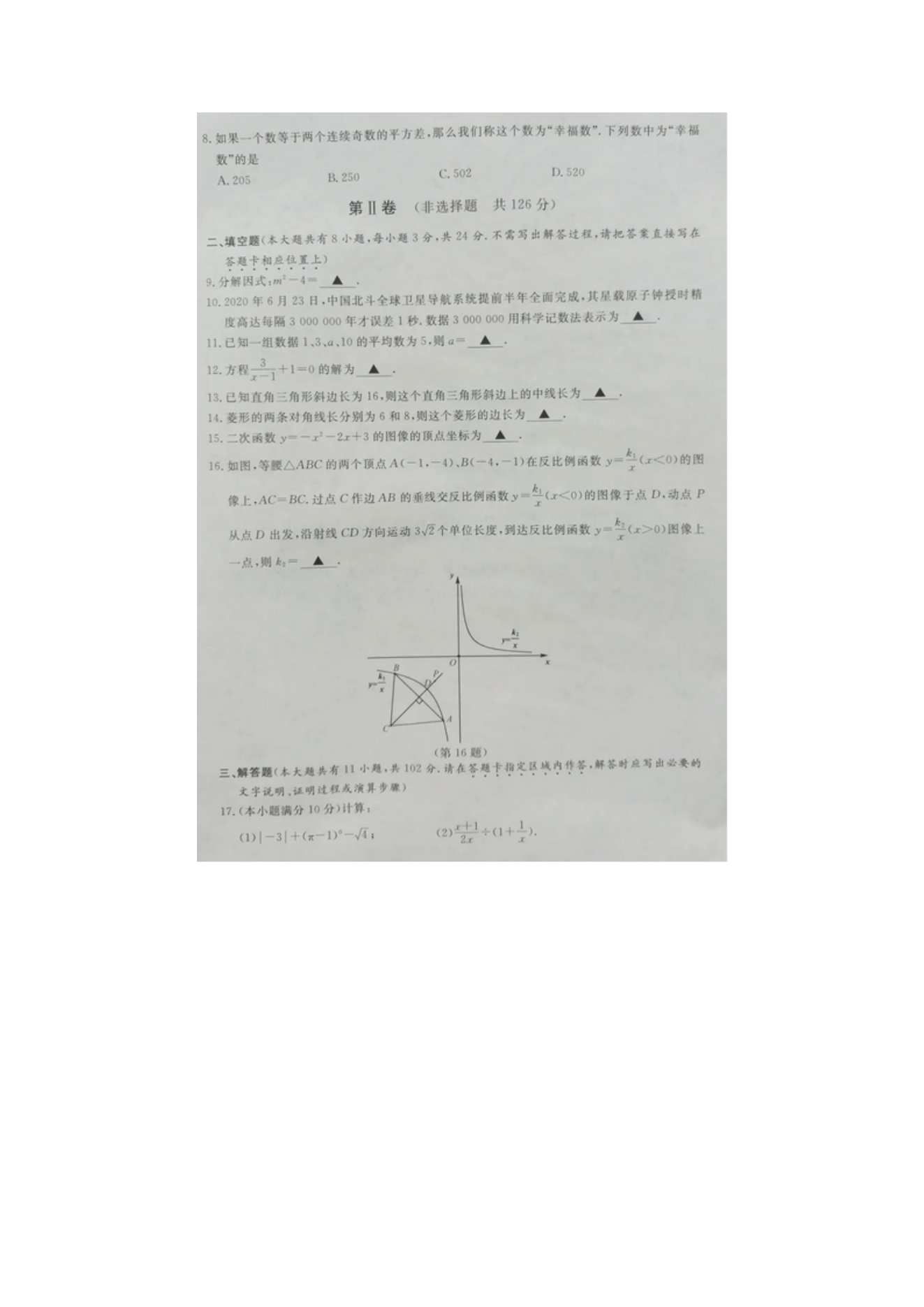 【文档名称】 2020年江苏淮安中考数学真题及答案(图片版).doc