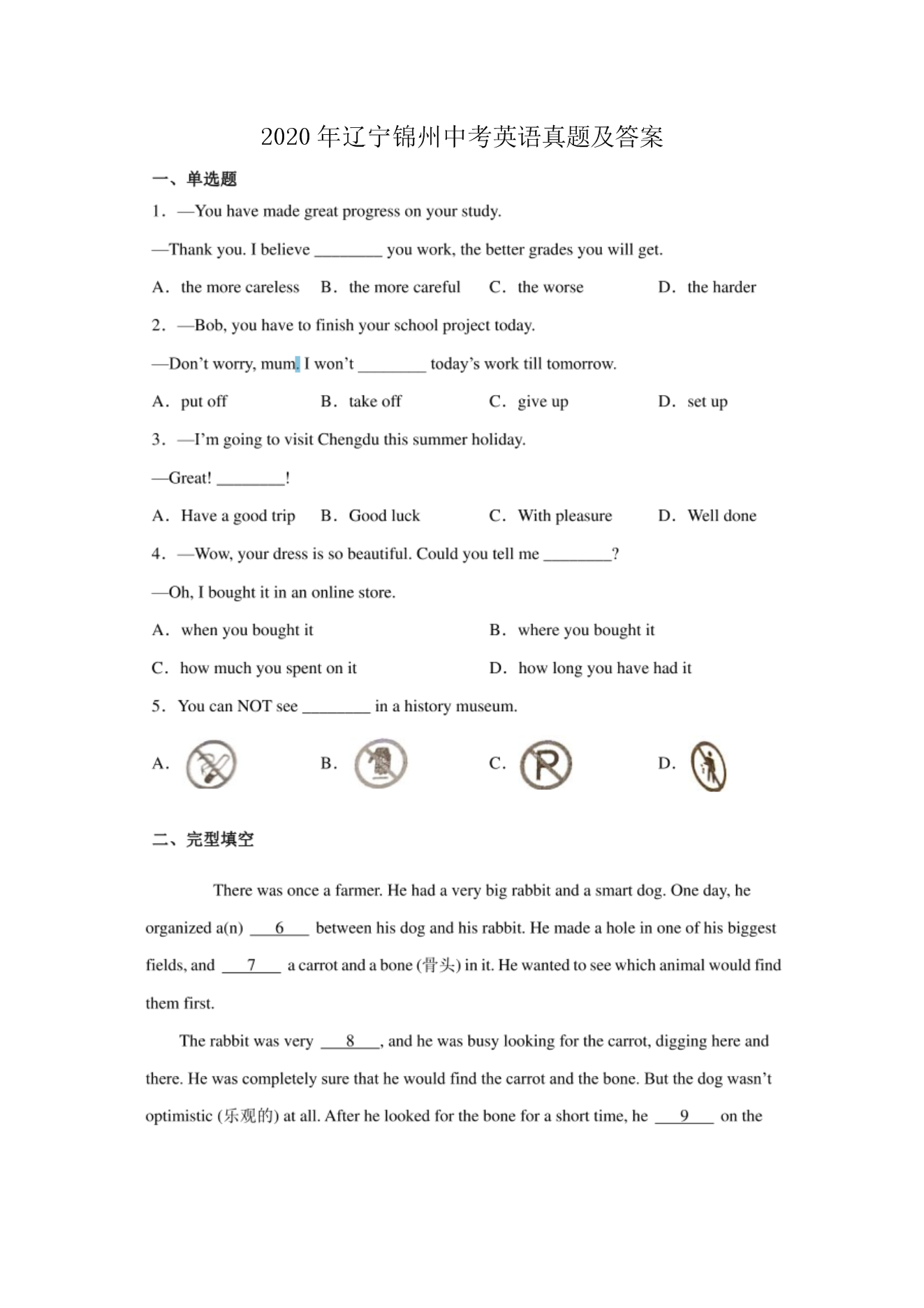 【文档名称】 2020年辽宁锦州中考英语真题及答案(图片版).doc