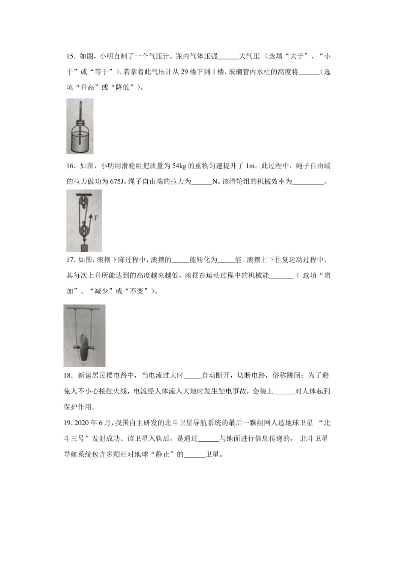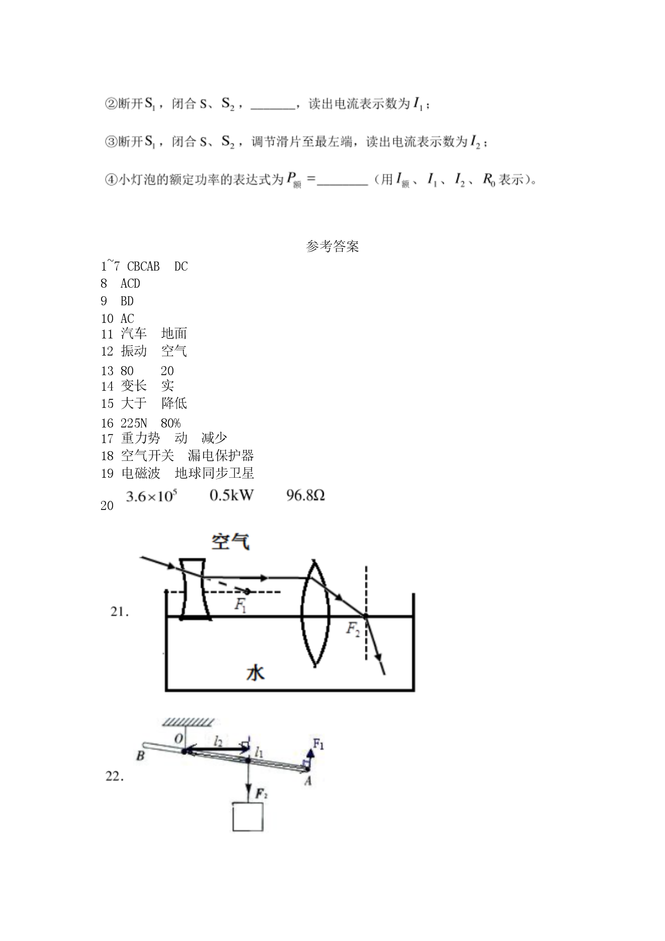 【文档名称】 2020年辽宁丹东中考物理真题及答案(图片版).doc