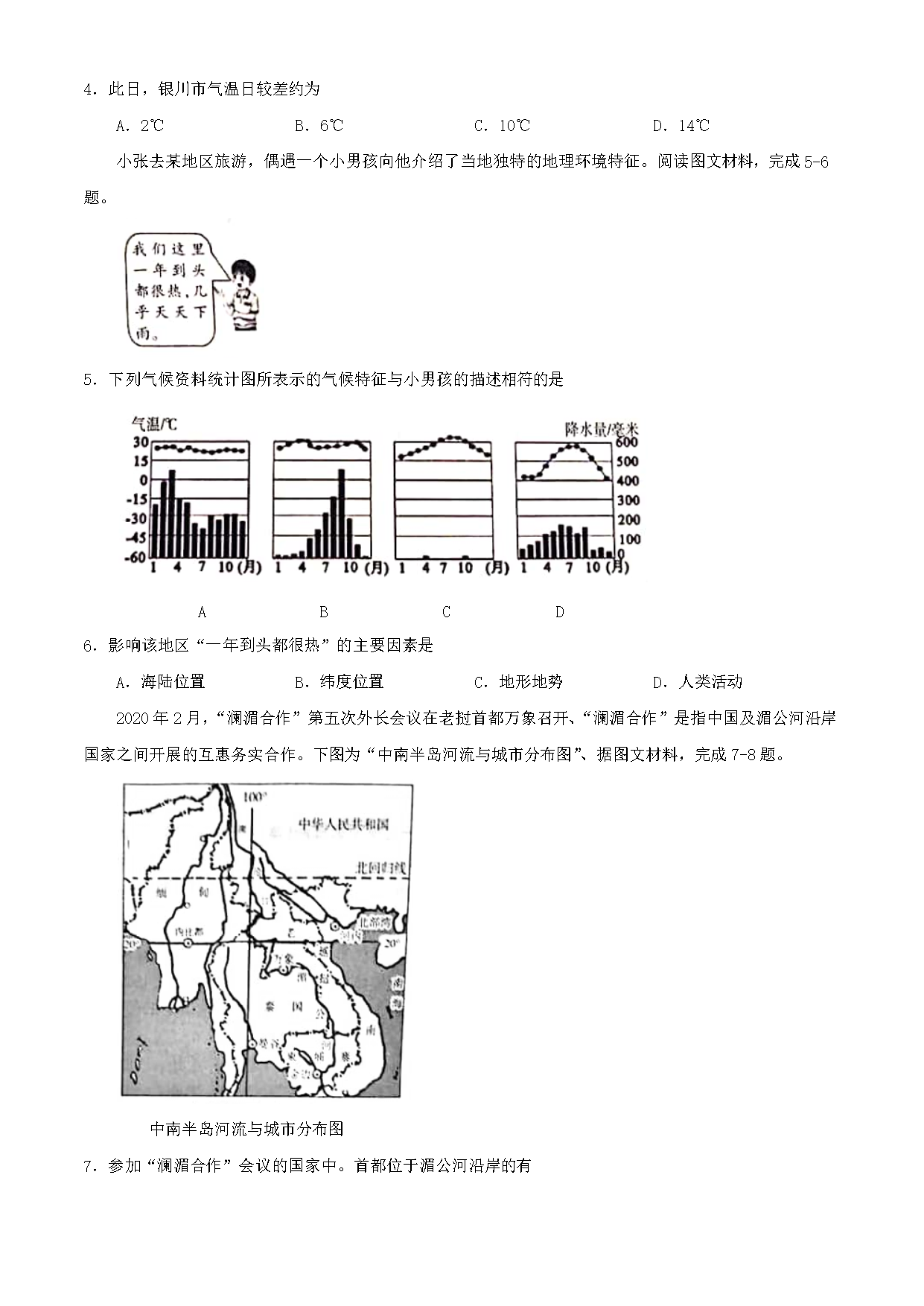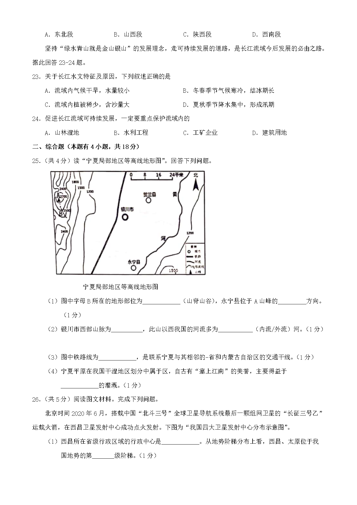 【文档名称】 2020年宁夏吴忠中考地理真题及答案(Word版).doc