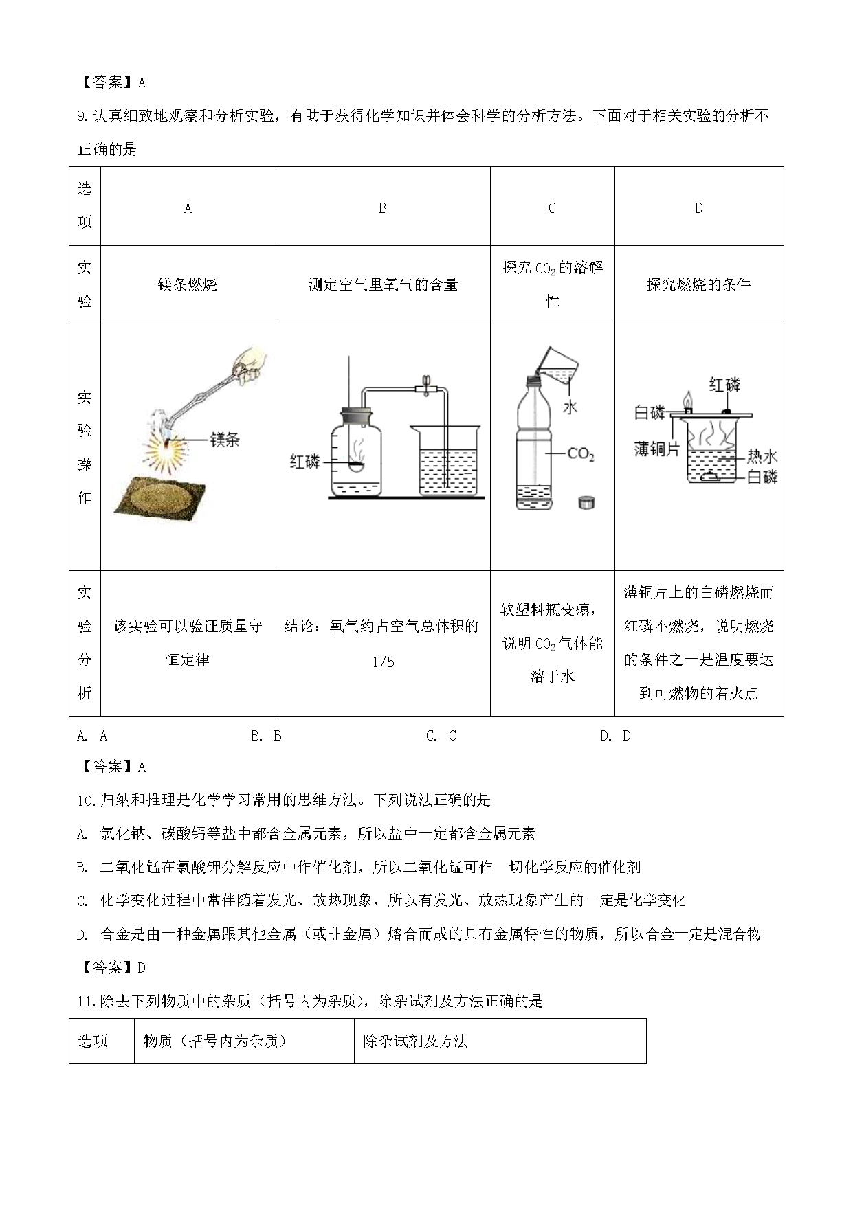【文档名称】 2020年宁夏固原中考化学真题及答案(Word版).doc