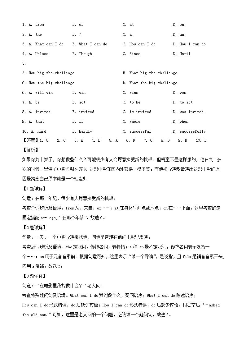 【文档名称】 2020年陕西省榆林中考英语试卷及答案(Word版).doc