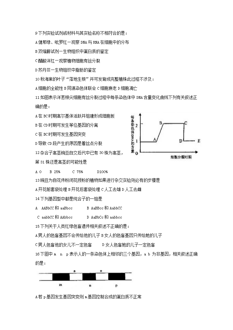 【文档名称】 2016年内蒙古普通高中会考生物真题(Word版).doc