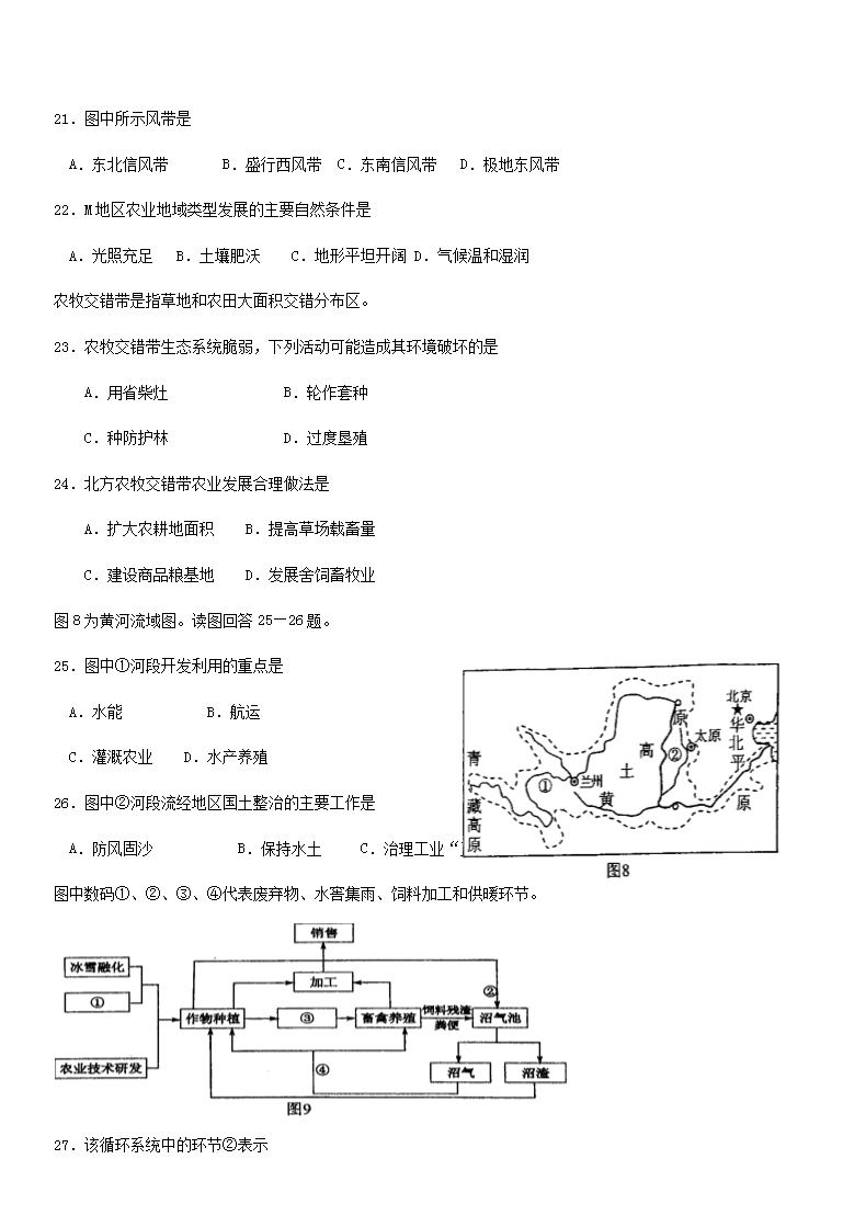 【文档名称】 2017年内蒙古普通高中会考地理真题(Word版).doc
