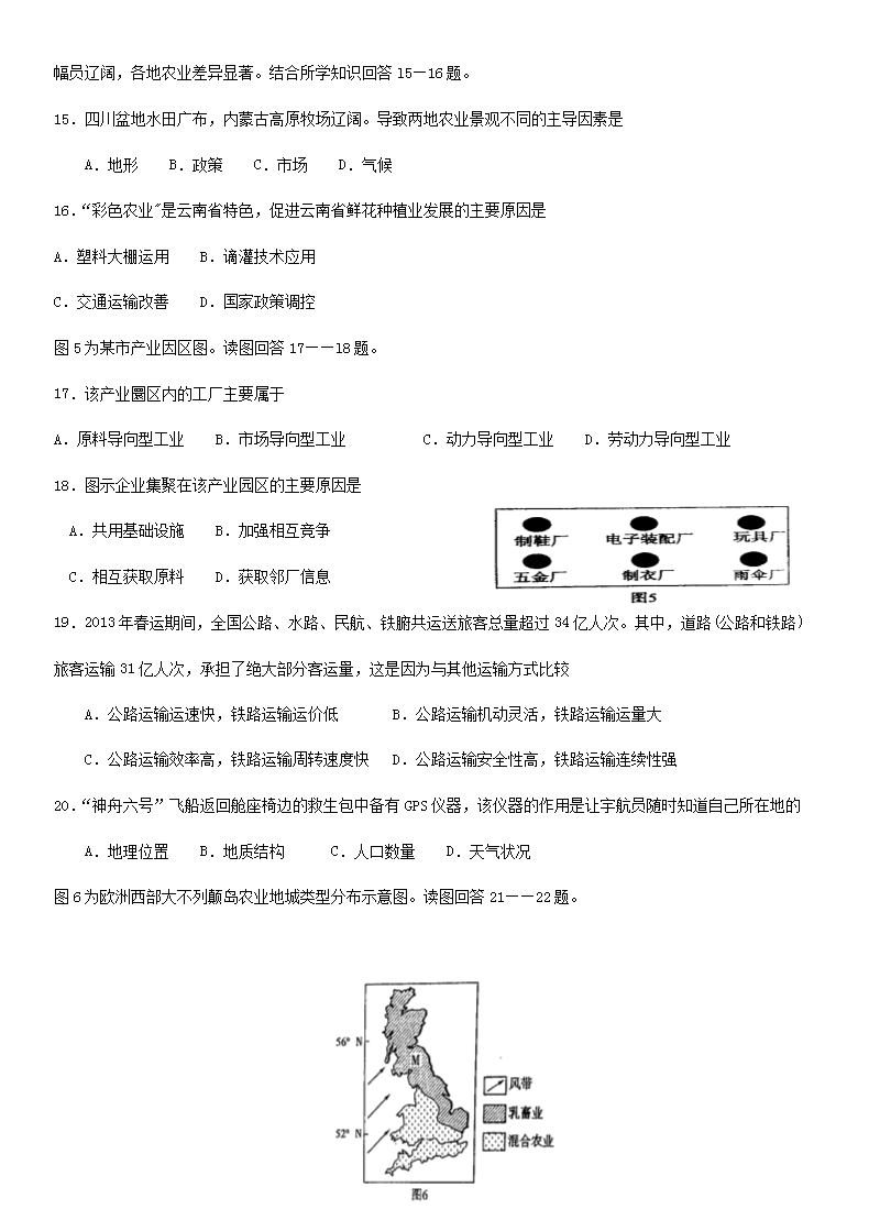 【文档预览】 无忧考网整理发布2017年内蒙古普通高中会考地理真题(Word版),前五页预览如下: