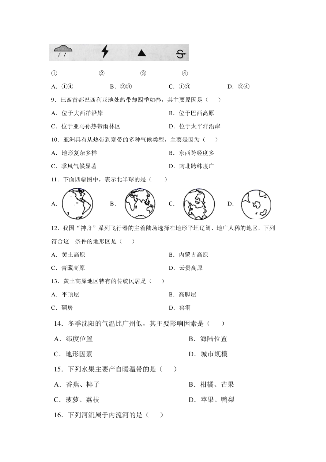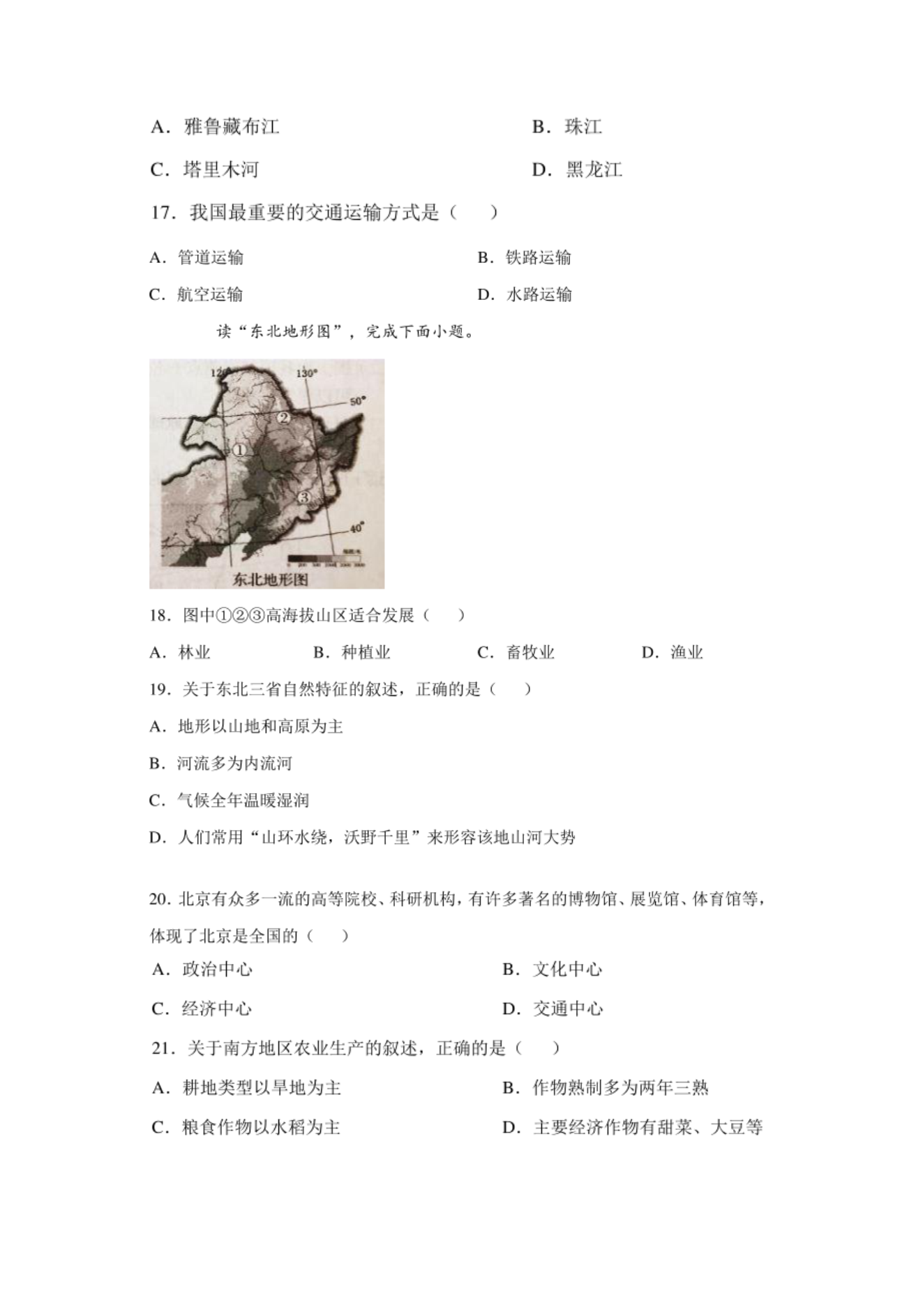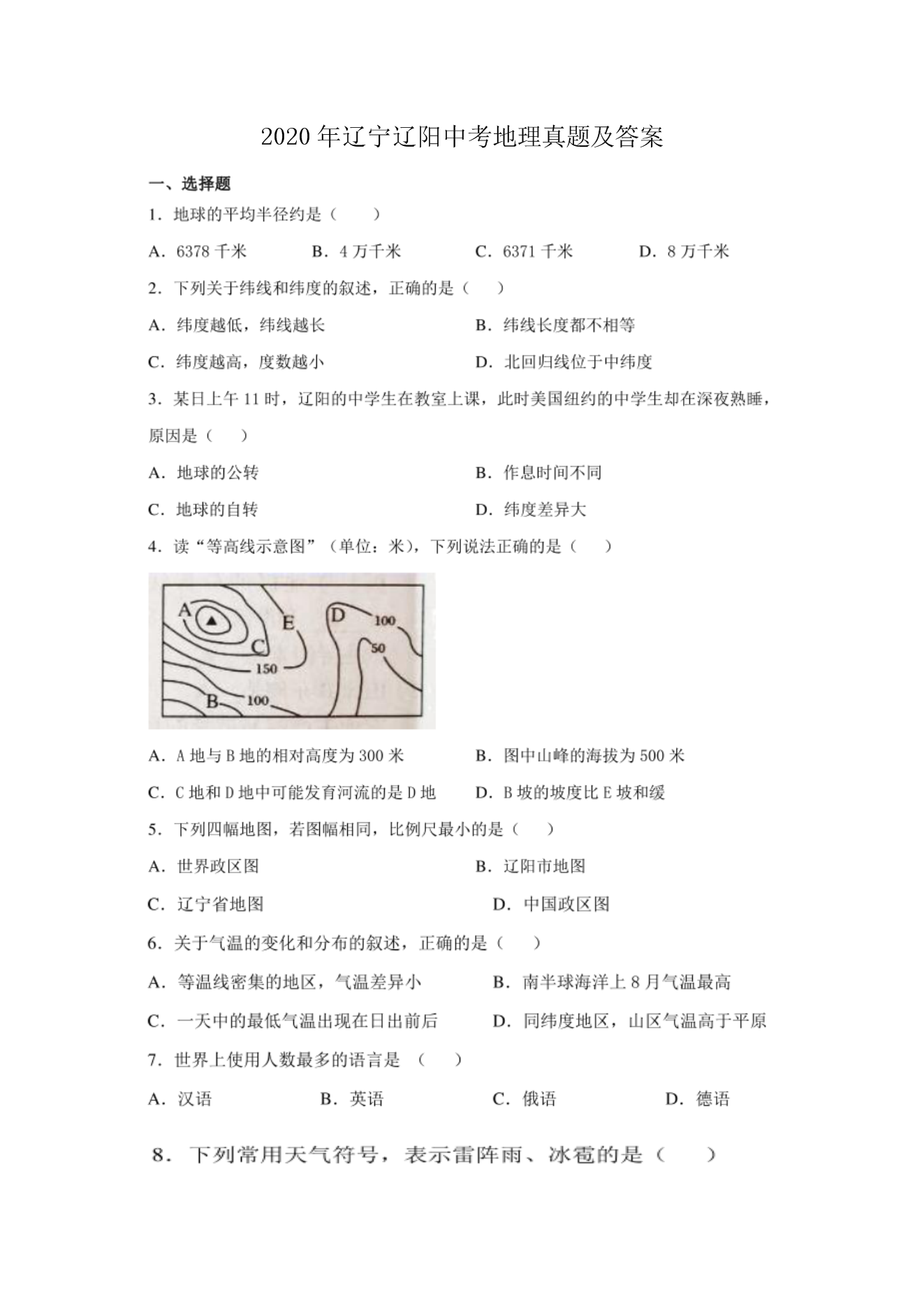 【文档名称】 2020年辽宁辽阳中考地理真题及答案(图片版).doc
