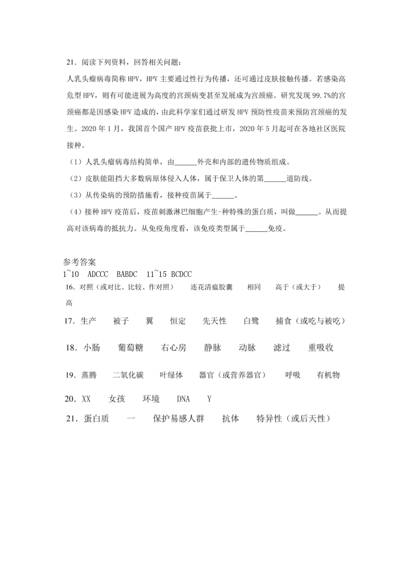 【文档预览】 无忧考网整理发布2020年辽宁营口中考生物真题及答案(图片版),前五页预览如下: