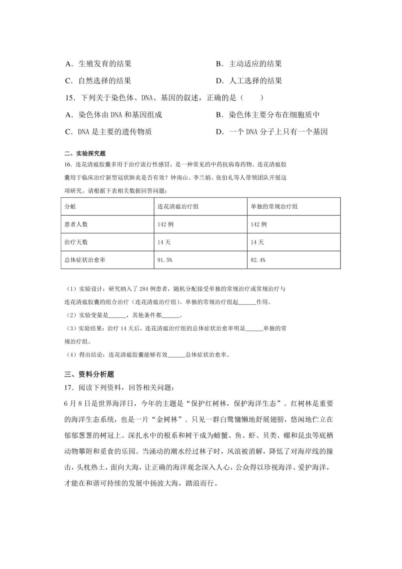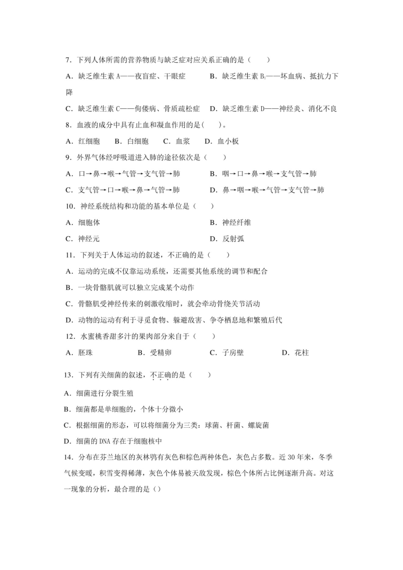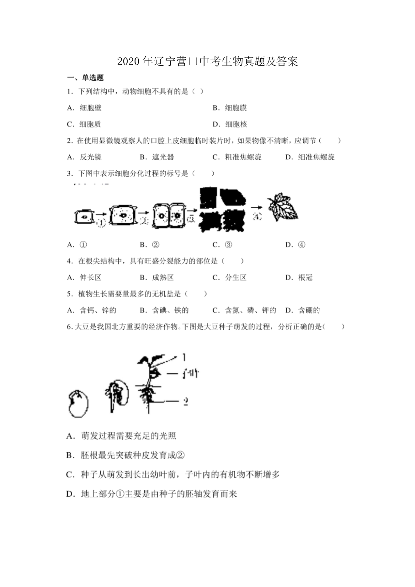 【文档名称】 2020年辽宁营口中考生物真题及答案(图片版).doc