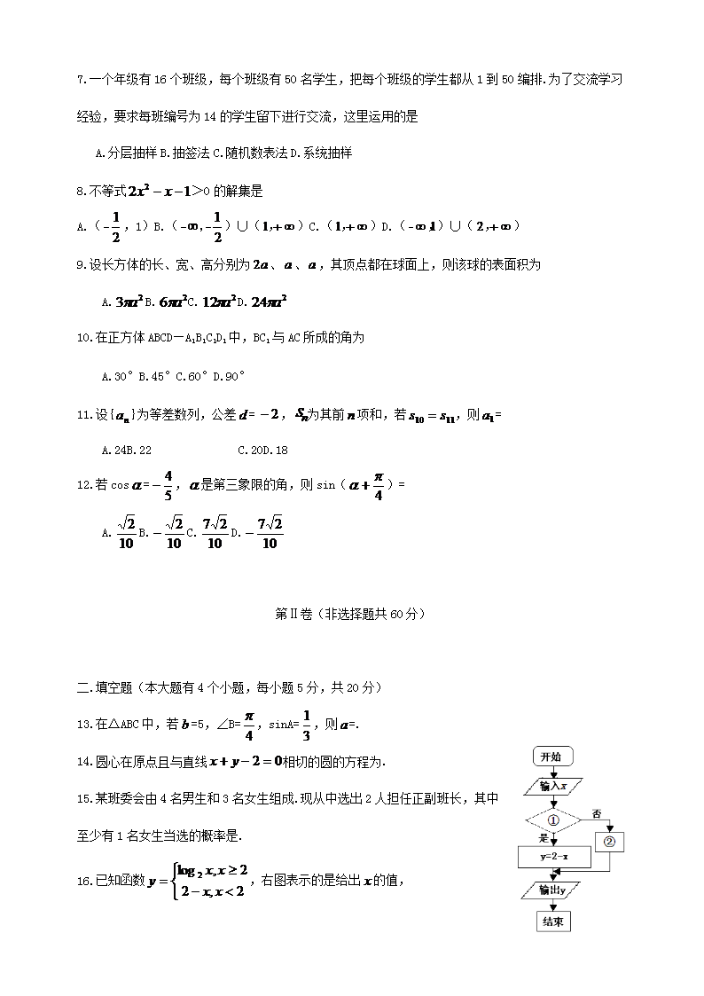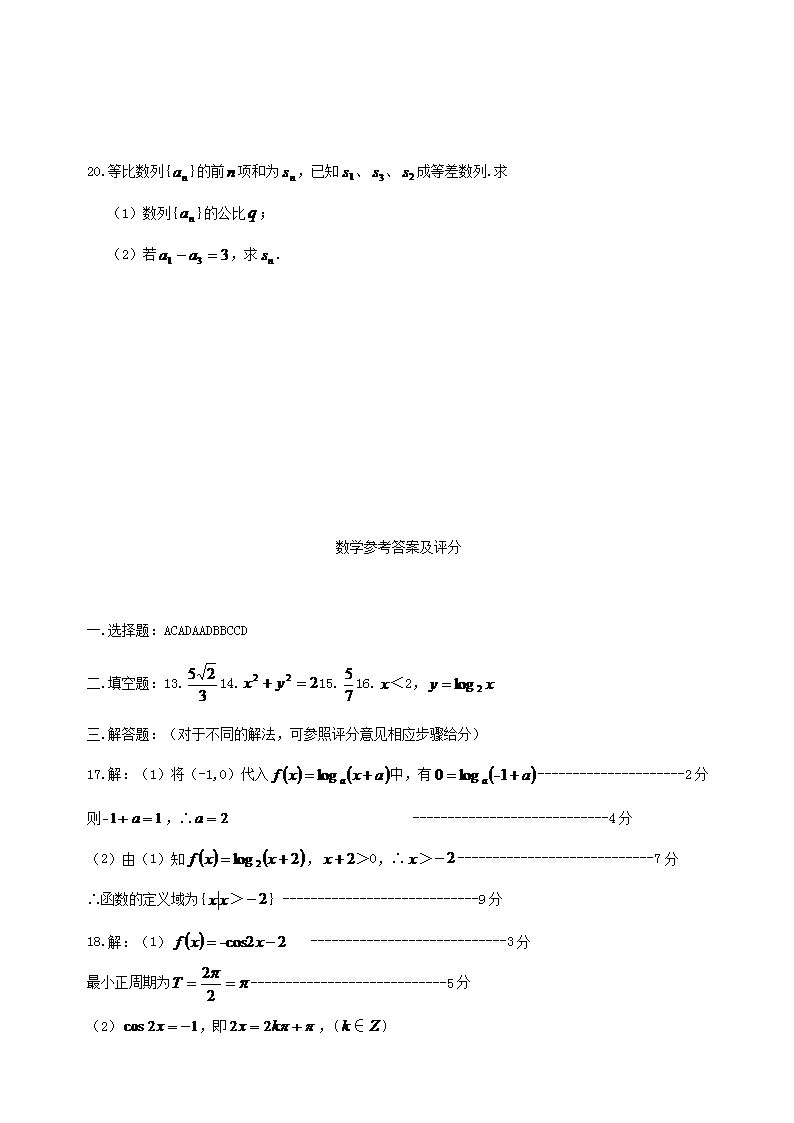 【文档名称】 2012年青海普通高中会考数学真题及答案(Word版).doc