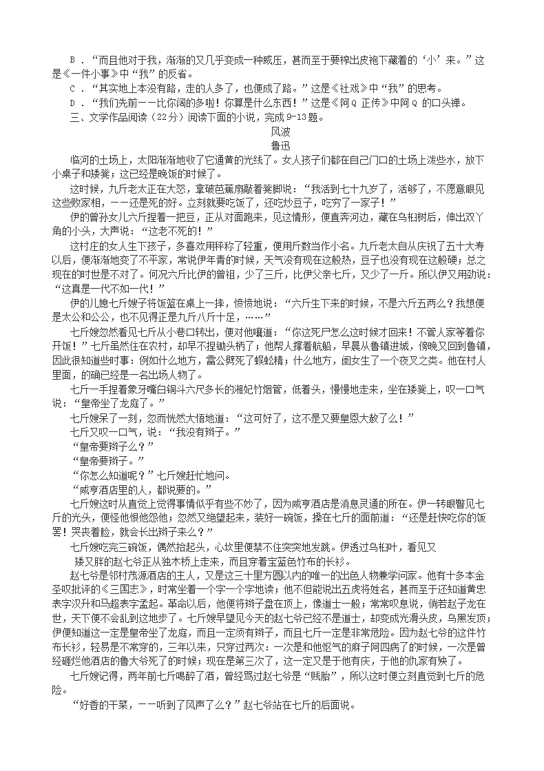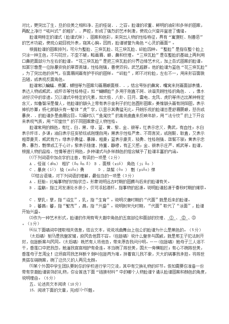 【文档名称】 2016年北京普通高中会考语文真题(Word版).doc