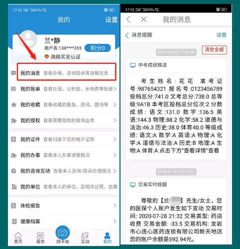 3.成绩公布后,可在【我的】—【我的消息】中查看成绩。