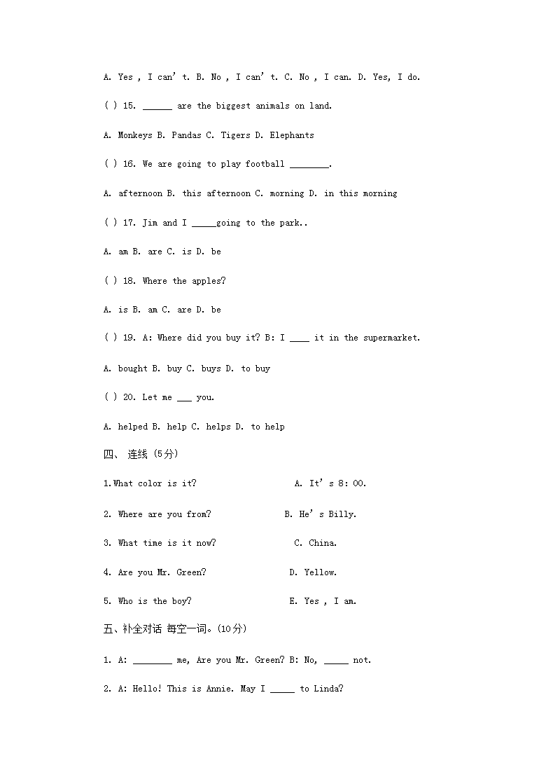 【文档预览】 无忧考网整理发布2019年北京小升初英语真题及答案(Word版),前五页预览如下: