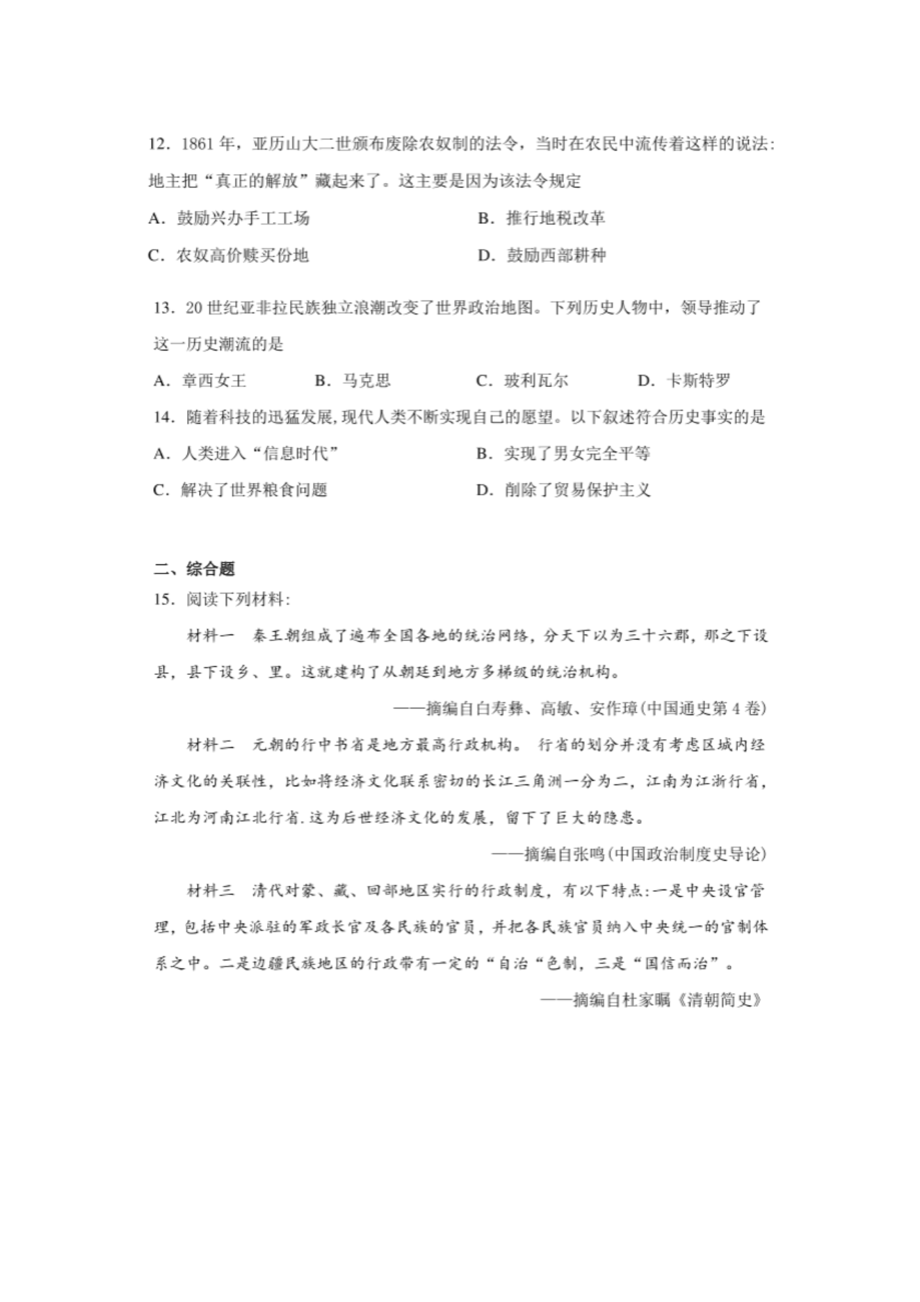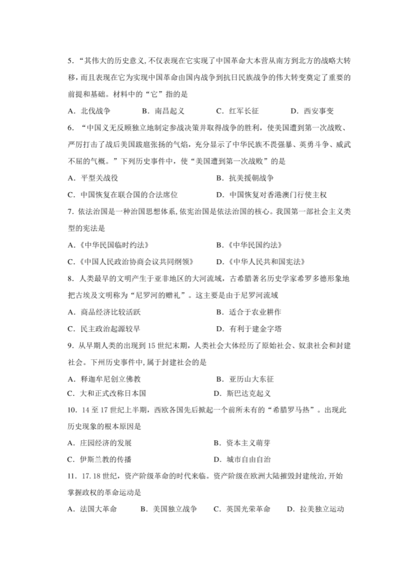 【文档名称】 2020年江苏常州中考历史真题及答案(图片版).doc