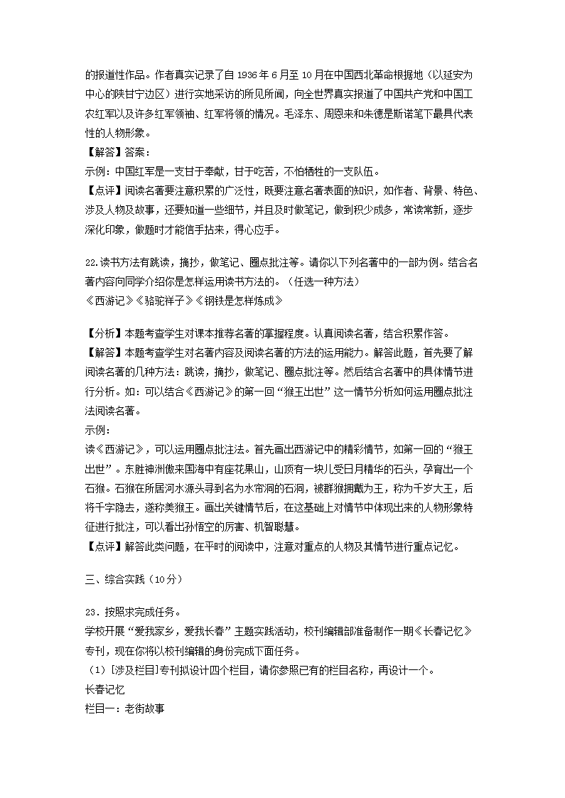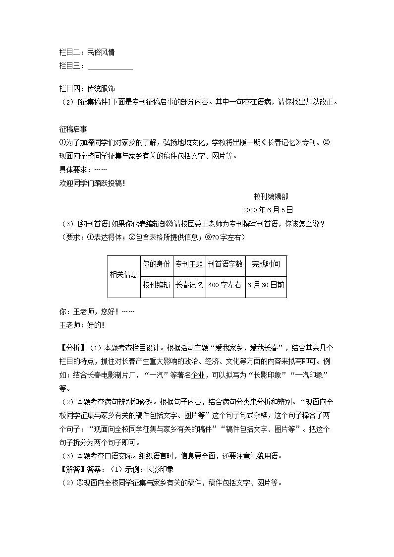 【文档名称】 2020年吉林长春中考语文真题及答案(Word版).doc