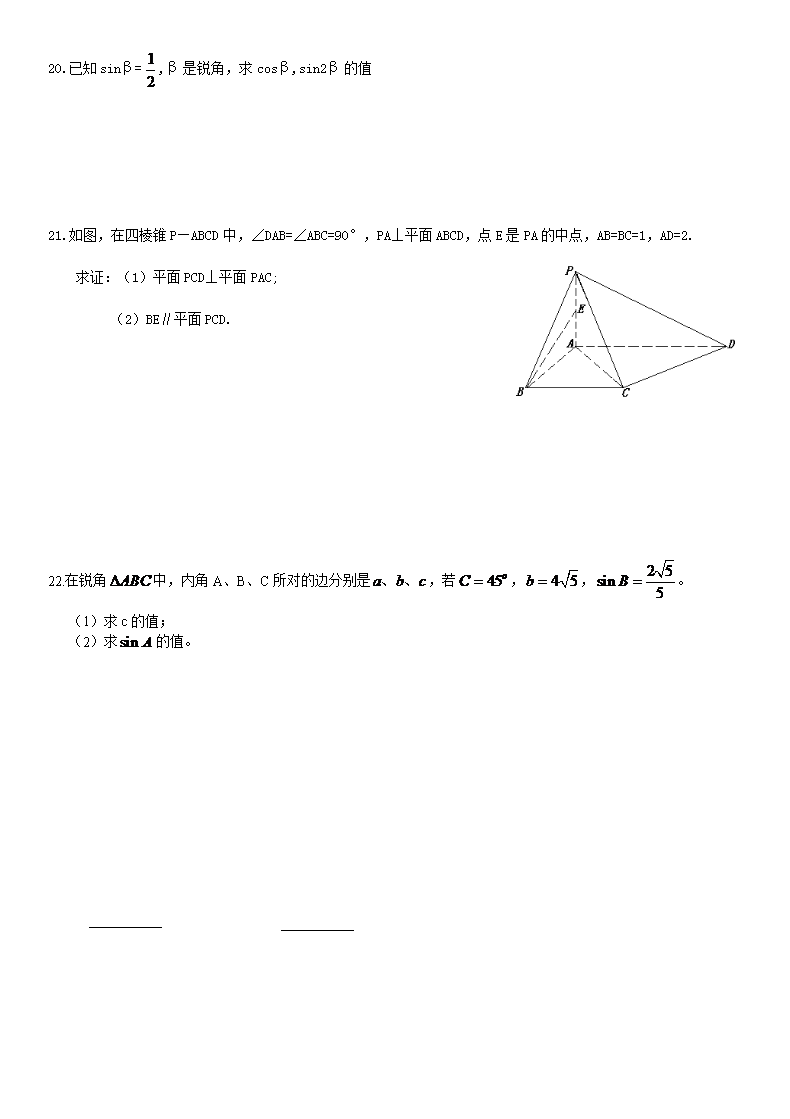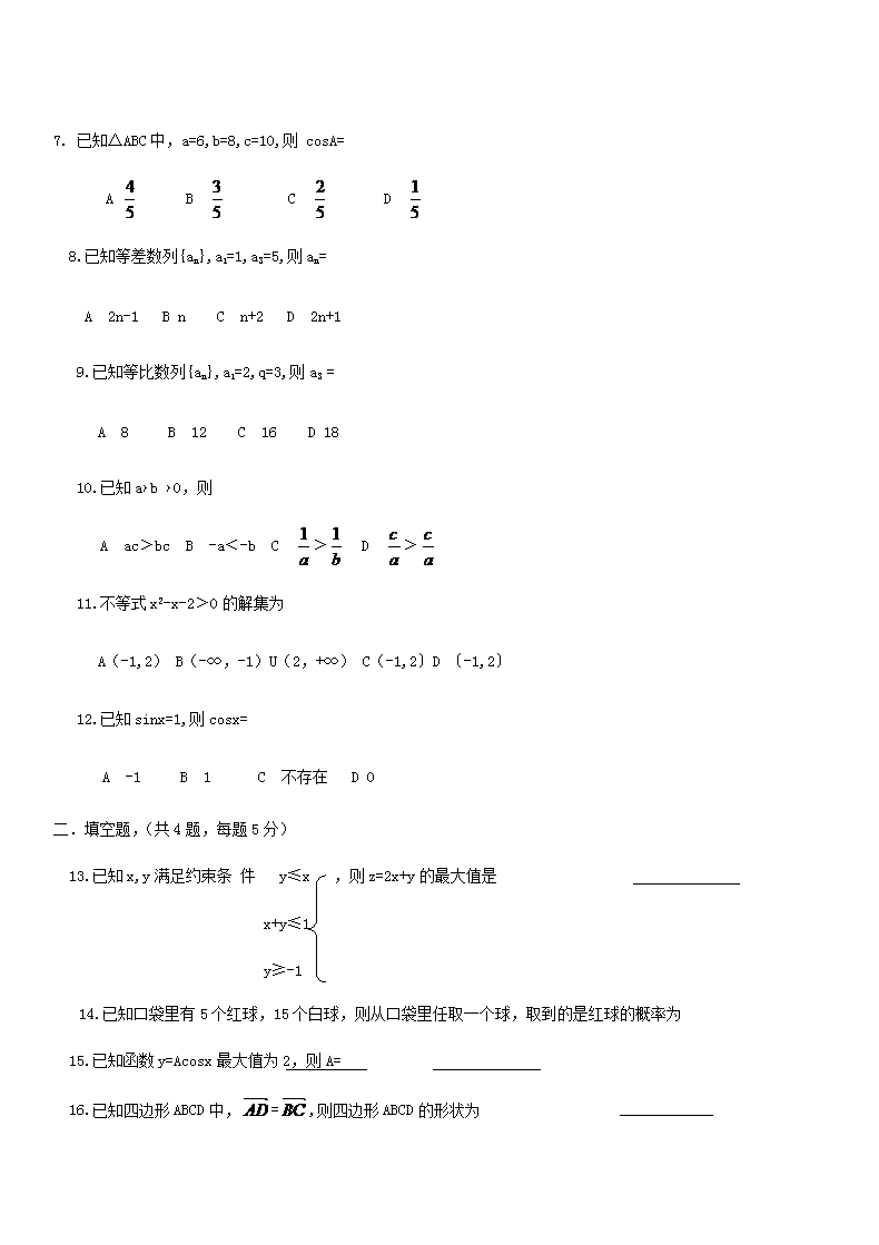 【文档名称】 2018年河北普通高中会考数学真题及答案(Word版).doc