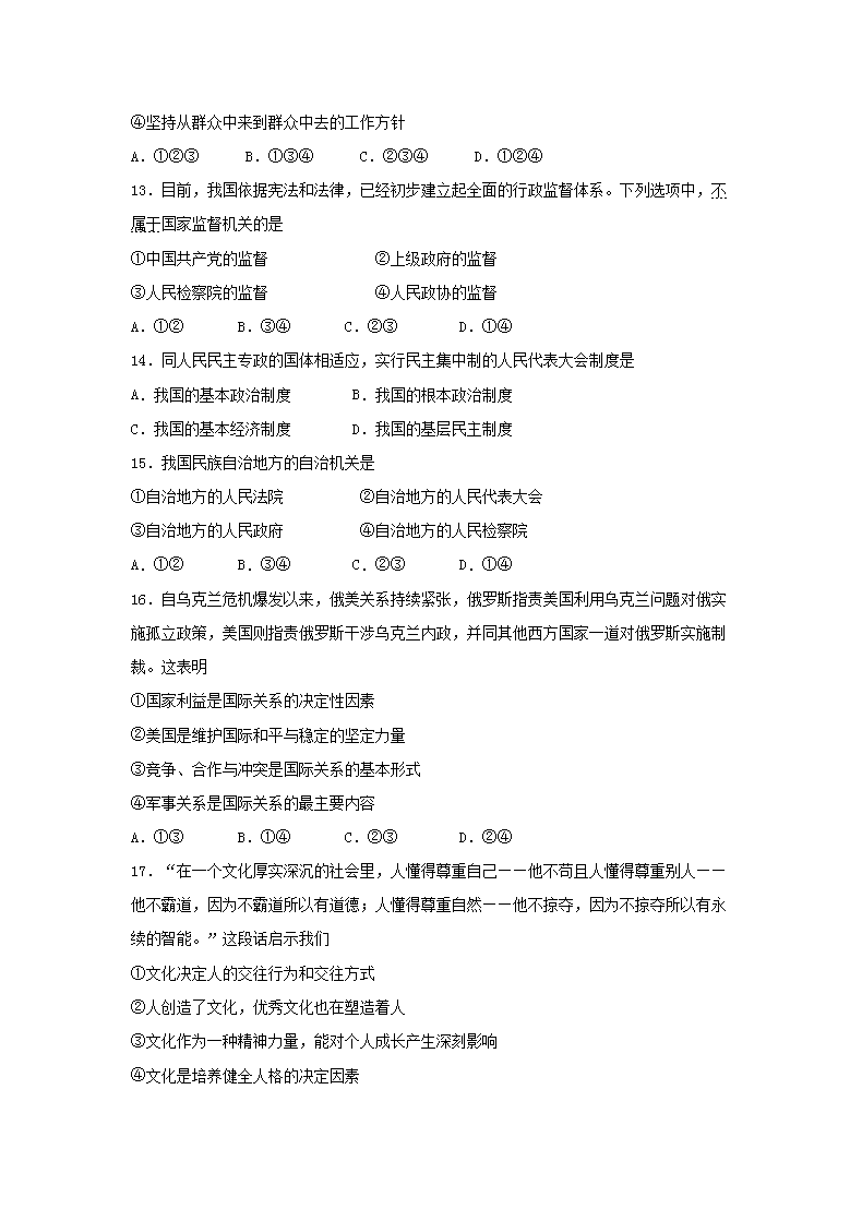 【文档名称】 2015年内蒙古自治区普通高中会考政治真题(Word版).doc