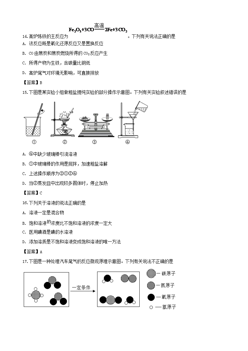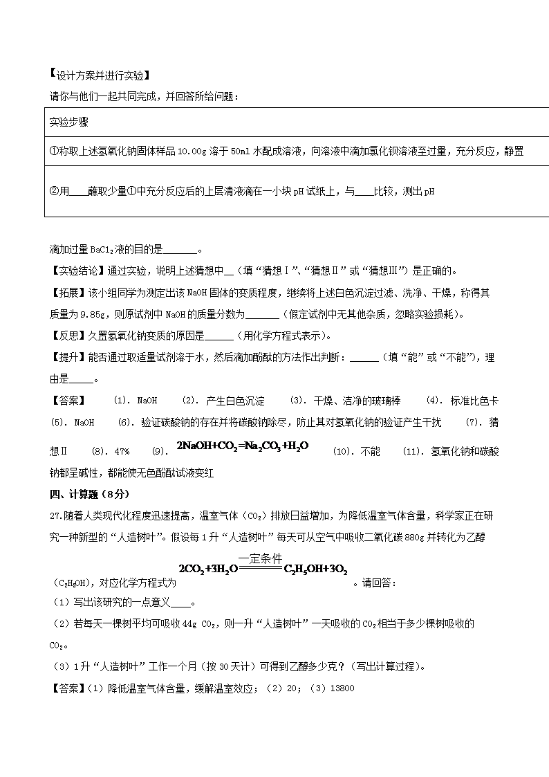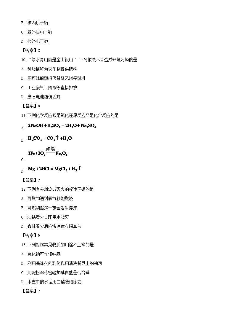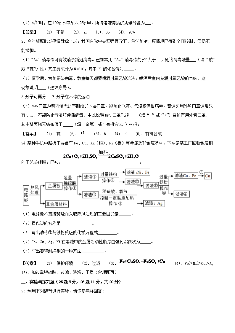 【文档名称】 2020年湖南怀化中考化学试题及答案(Word版).doc