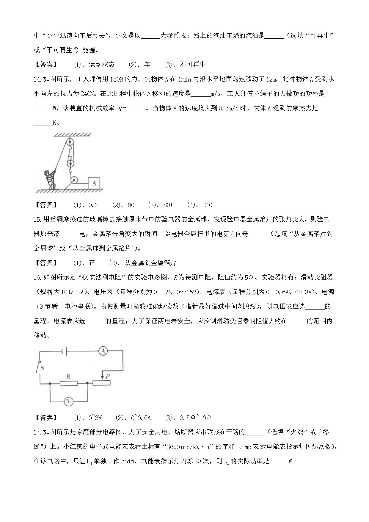 【文档名称】 2020年四川达州中考物理真题及答案(Word版).doc
