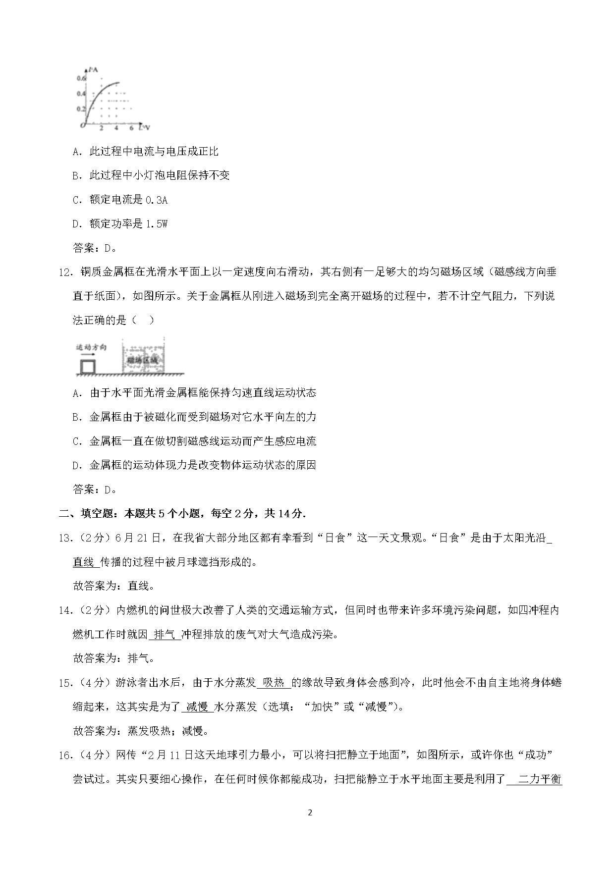 【文档预览】 无忧考网整理发布2020年贵州安顺中考物理真题及答案(Word版),前五页预览如下: