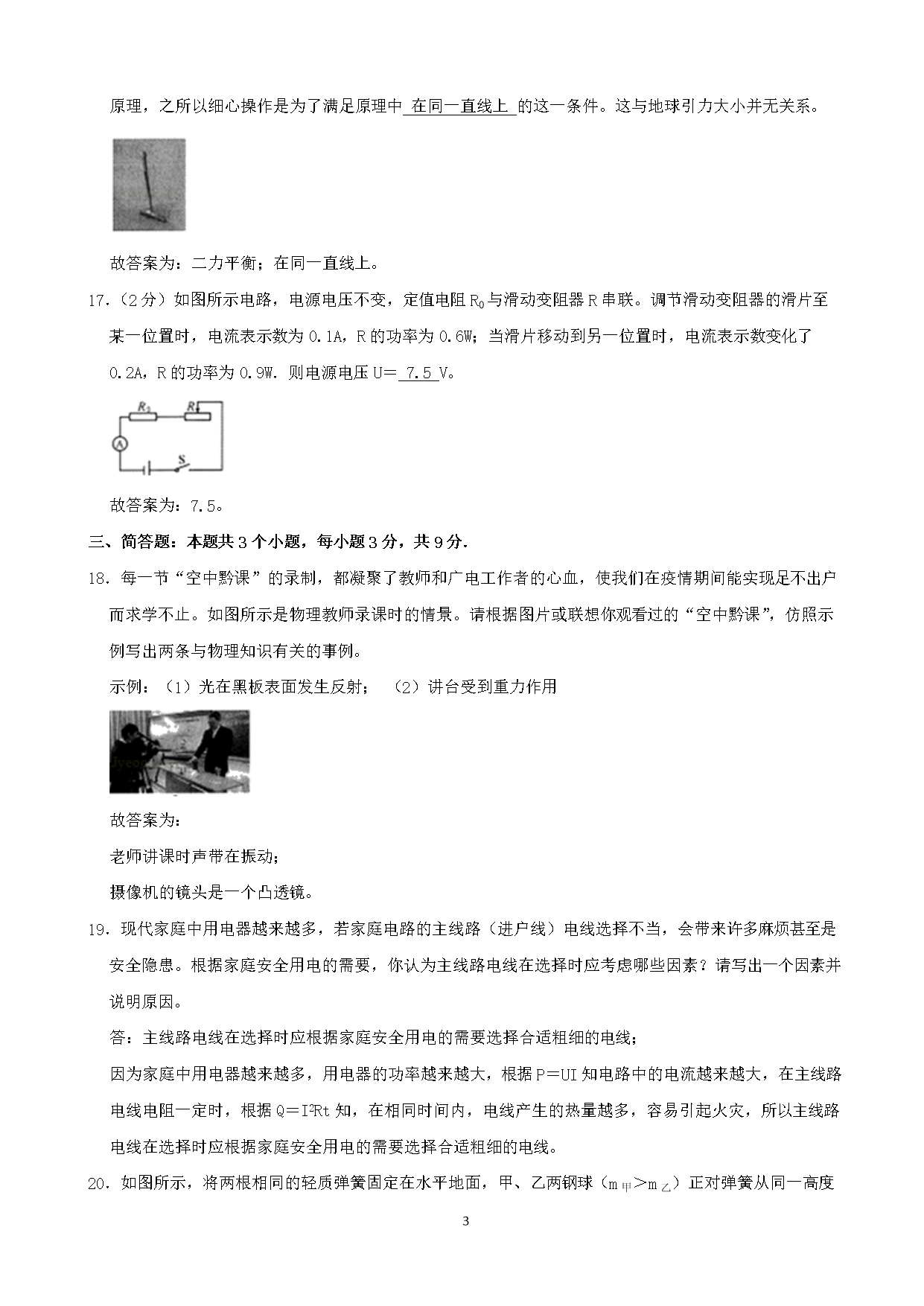 【文档名称】 2020年贵州安顺中考物理真题及答案(Word版).doc