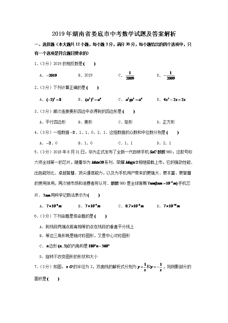 【文档名称】 2019年湖南省娄底市中考数学试题及答案解析(Word版).doc