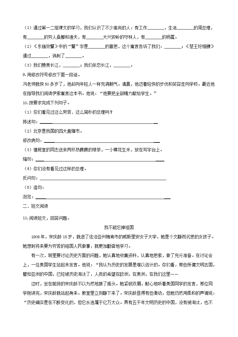 【文档名称】 2019年江苏徐州小升初语文真题及答案(Word版).doc