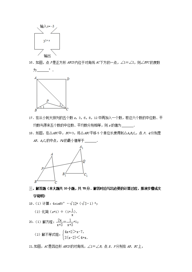 【文档名称】 2020年江苏镇江中考数学真题及答案(Word版).doc