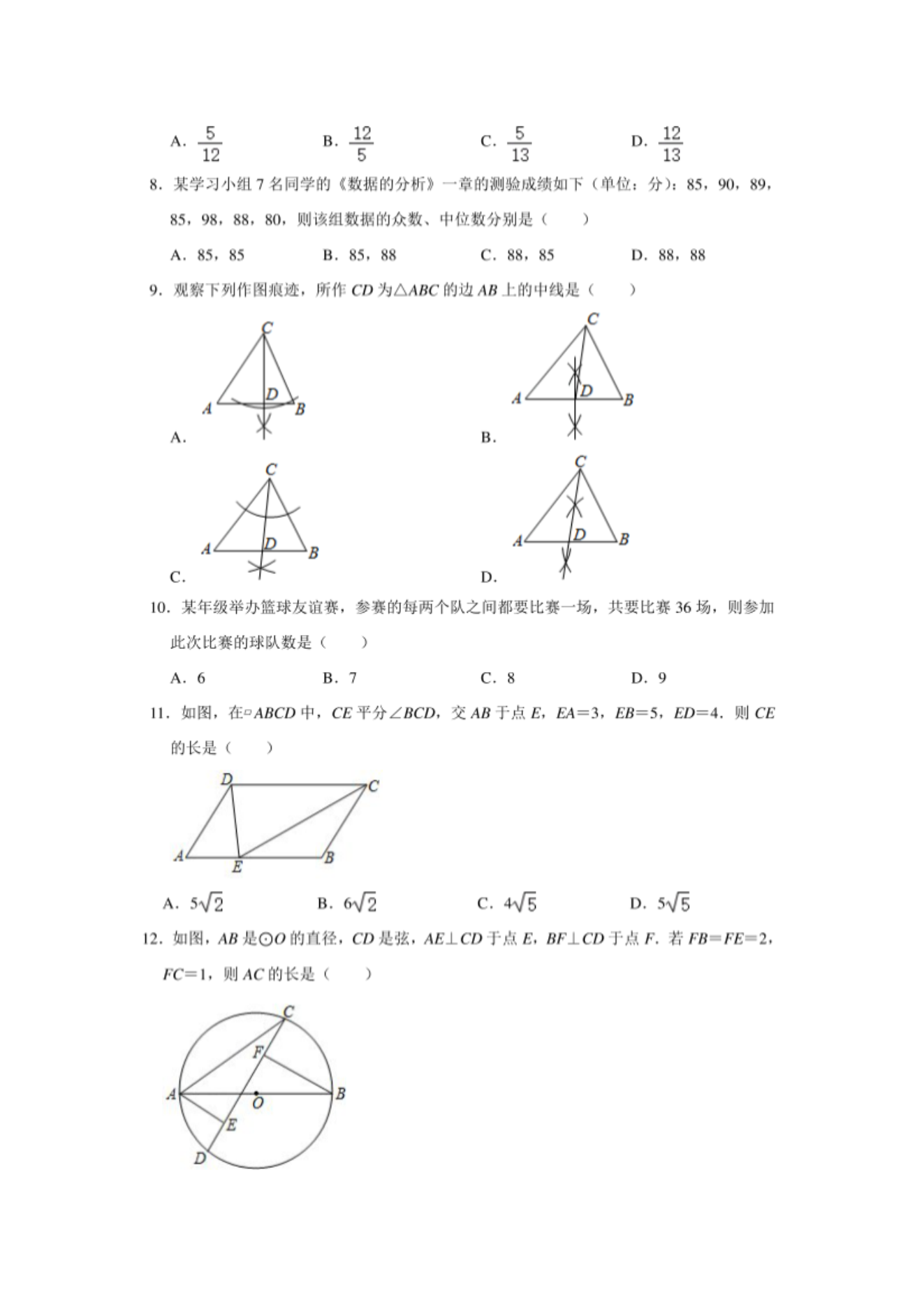 【文档名称】 2020年广西河池中考数学真题及答案(图片版).doc