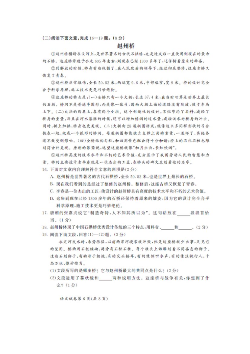 【文档预览】 无忧考网整理发布2020内蒙古呼和浩特中考语文真题及答案(图片版),前五页预览如下: