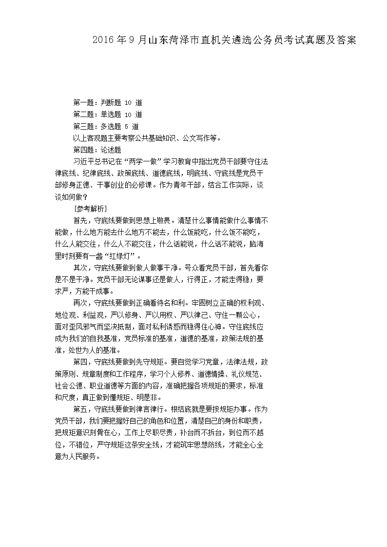 【文档名称】 2016年9月山东菏泽市直机关遴选公务员考试真题及答案(Word版).doc