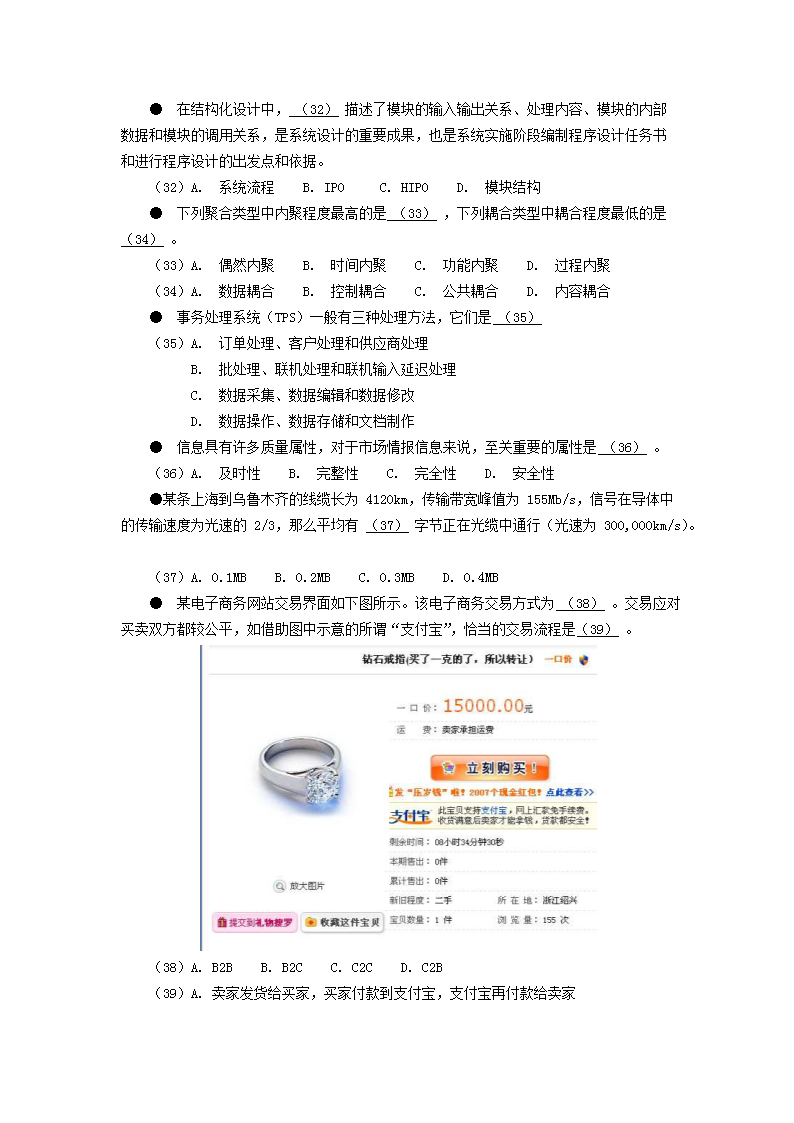 【文档名称】 2007上半年系统分析师考试真题及答案-上午卷(Word版).doc