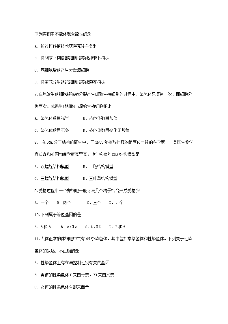 【文档预览】 无忧考网整理发布2017年辽宁普通高中会考生物真题及答案(Word版),前五页预览如下: