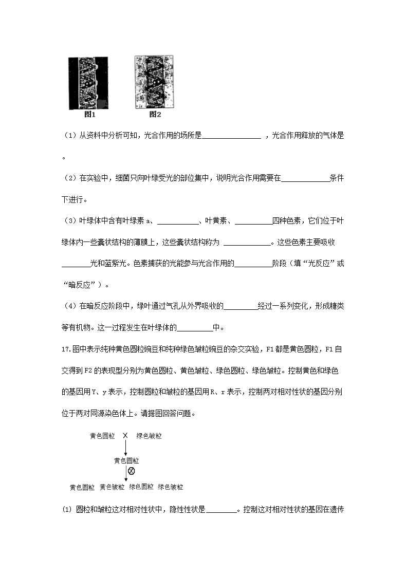 【文档名称】 2017年辽宁普通高中会考生物真题及答案(Word版).doc