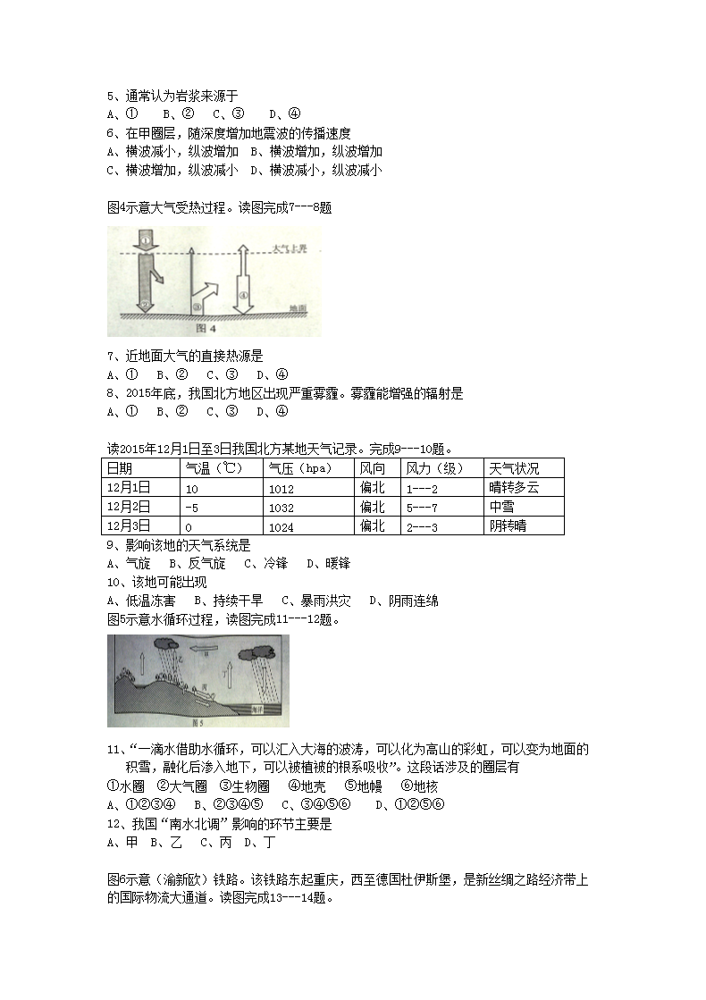 【文档名称】 2016年贵州普通高中会考地理真题及答案(Word版).doc