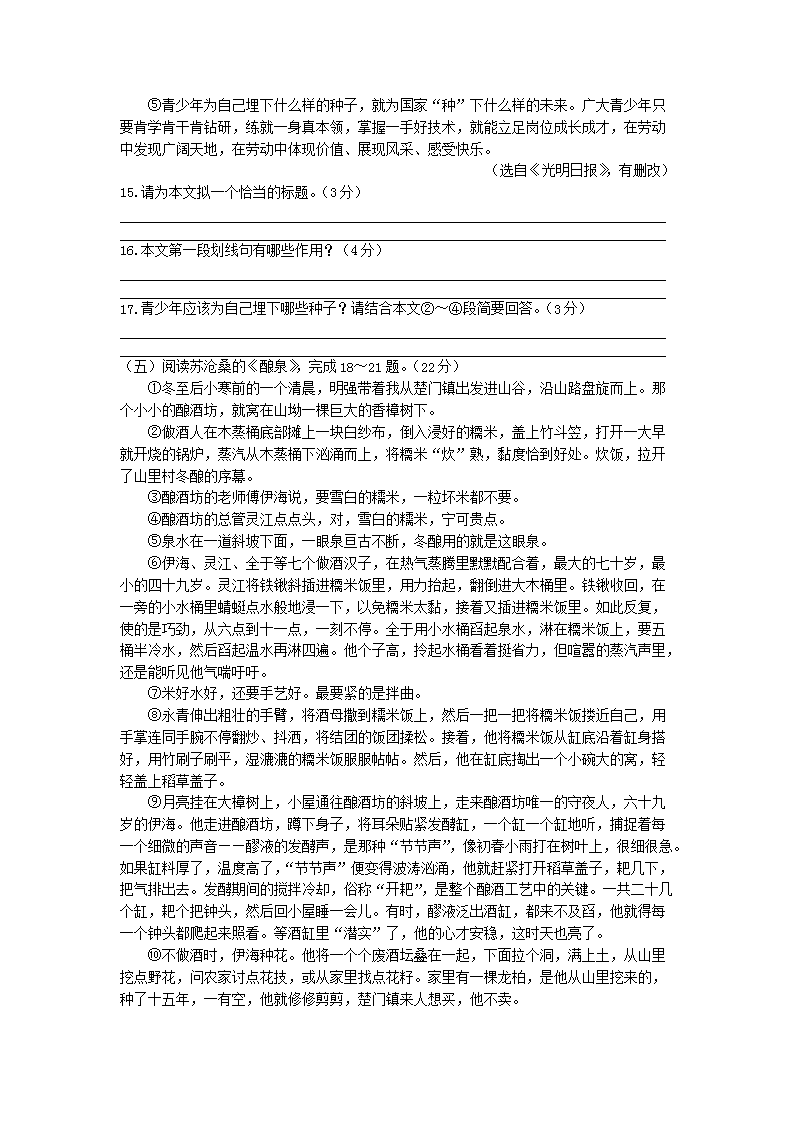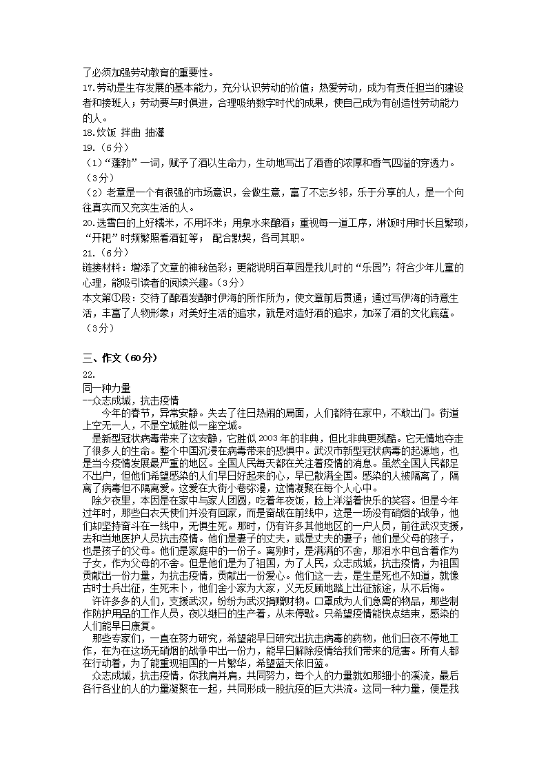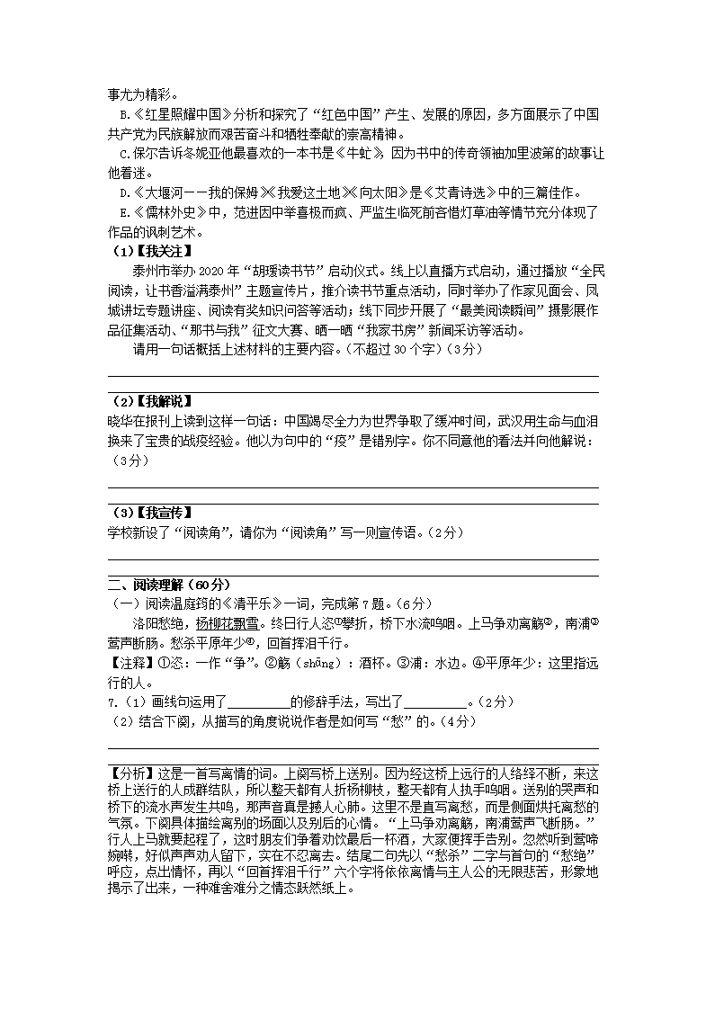 【文档预览】 无忧考网整理发布2020年江苏泰州中考语文真题及答案(Word版),前五页预览如下: