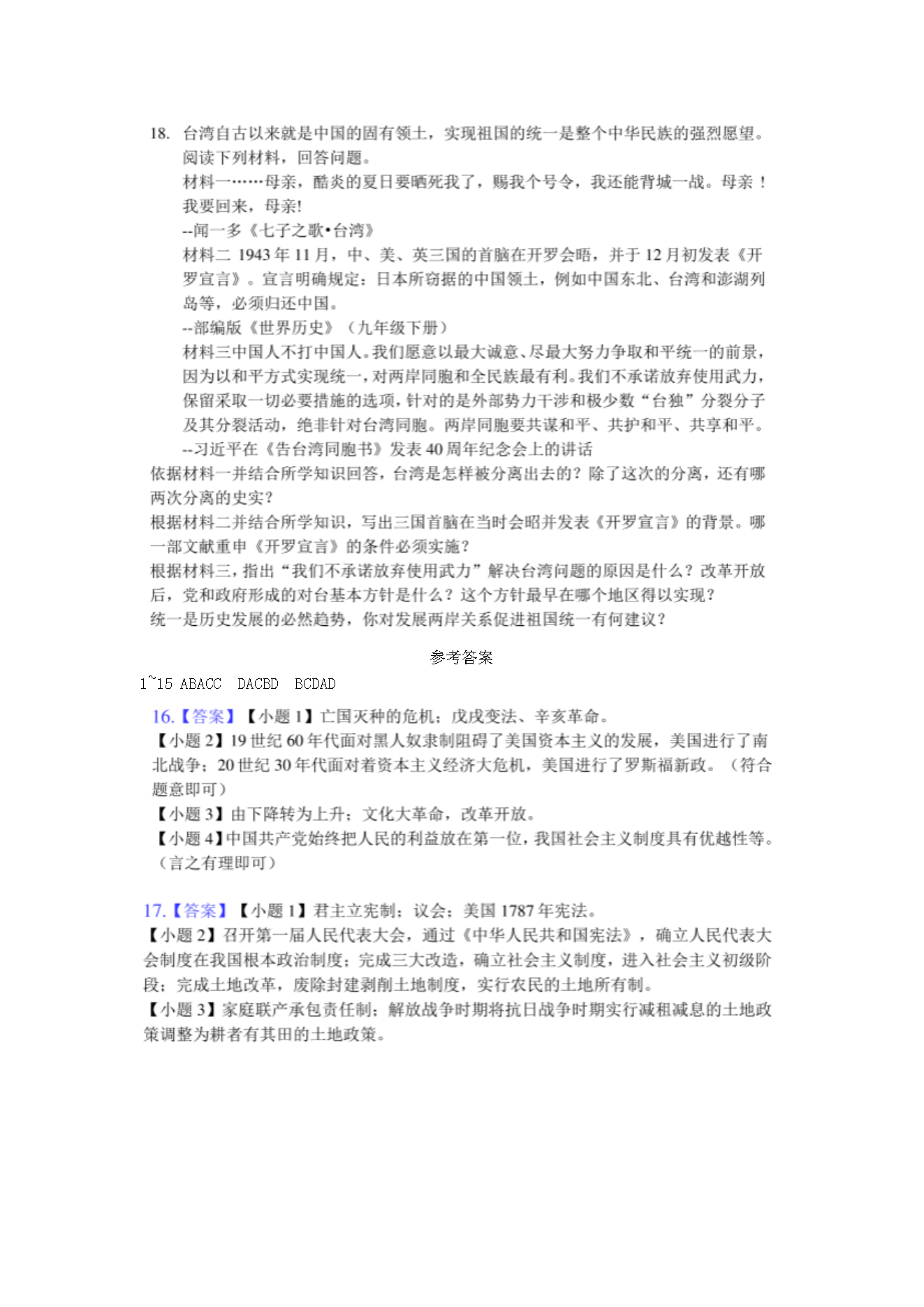 【文档预览】 无忧考网整理发布2020年广西贵港中考历史真题及答案(图片版),前五页预览如下: