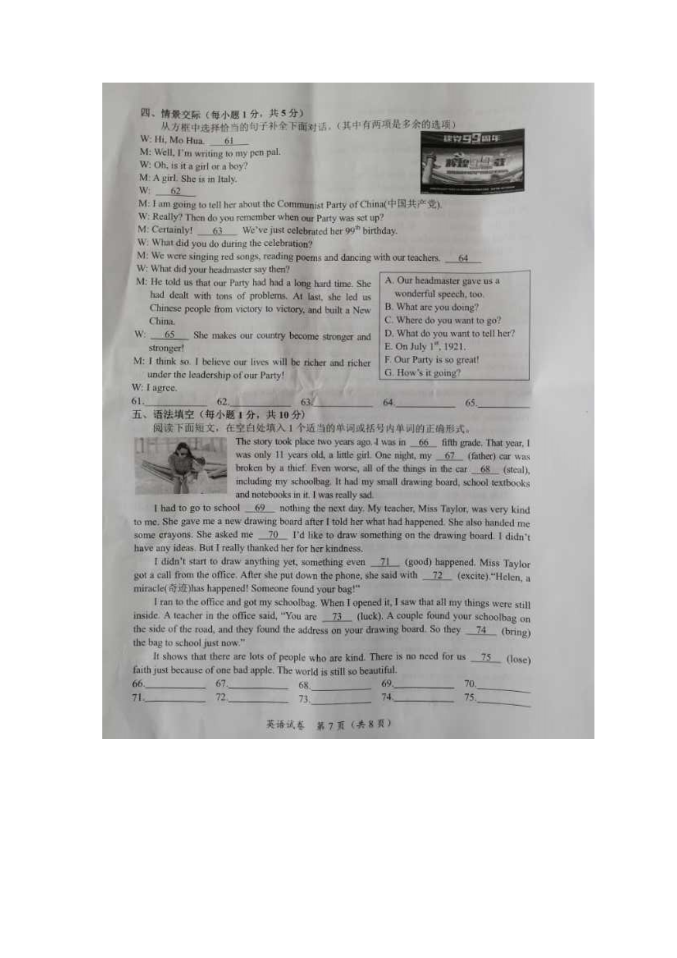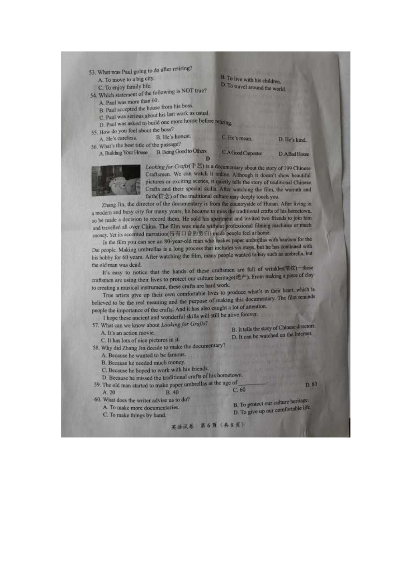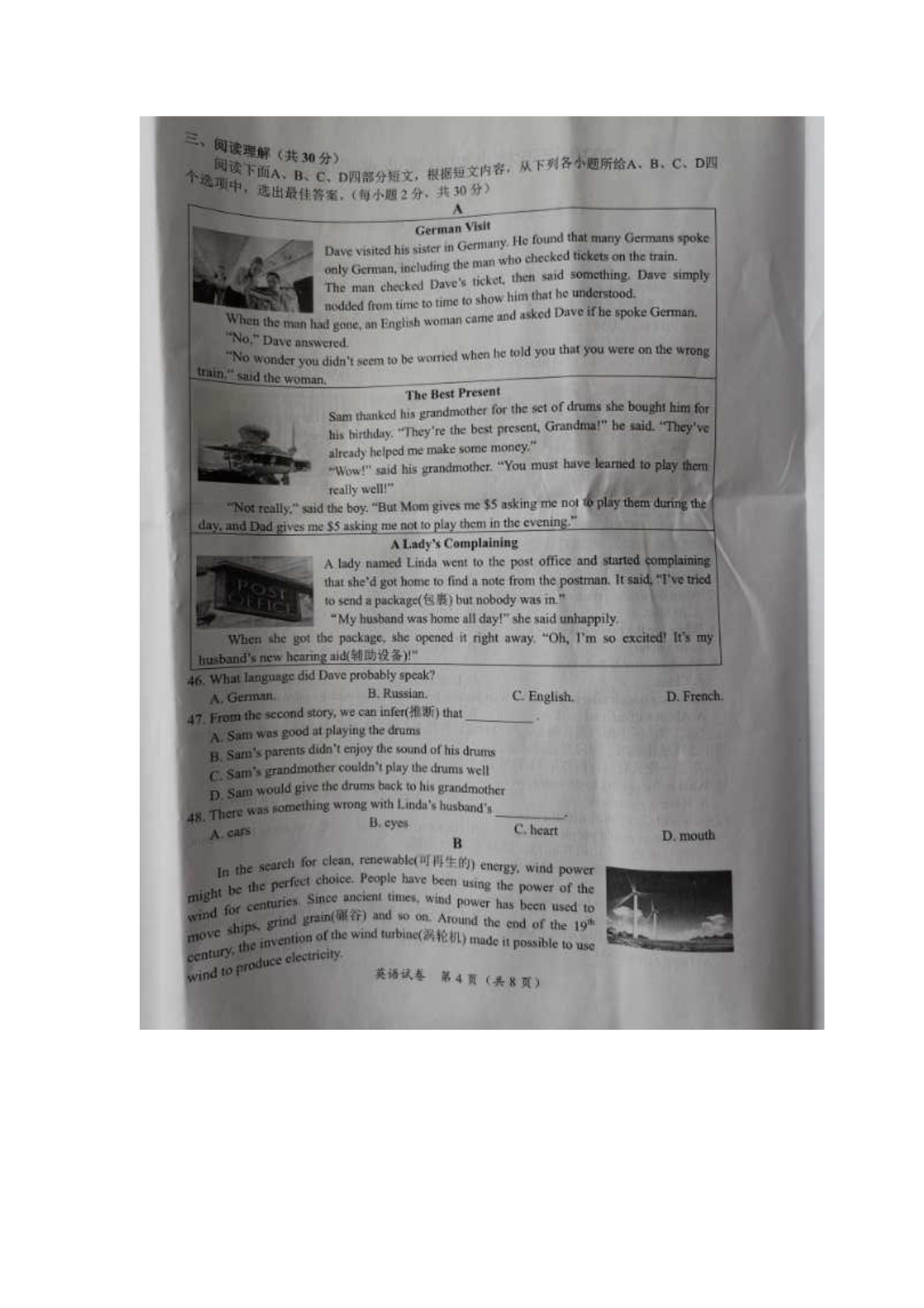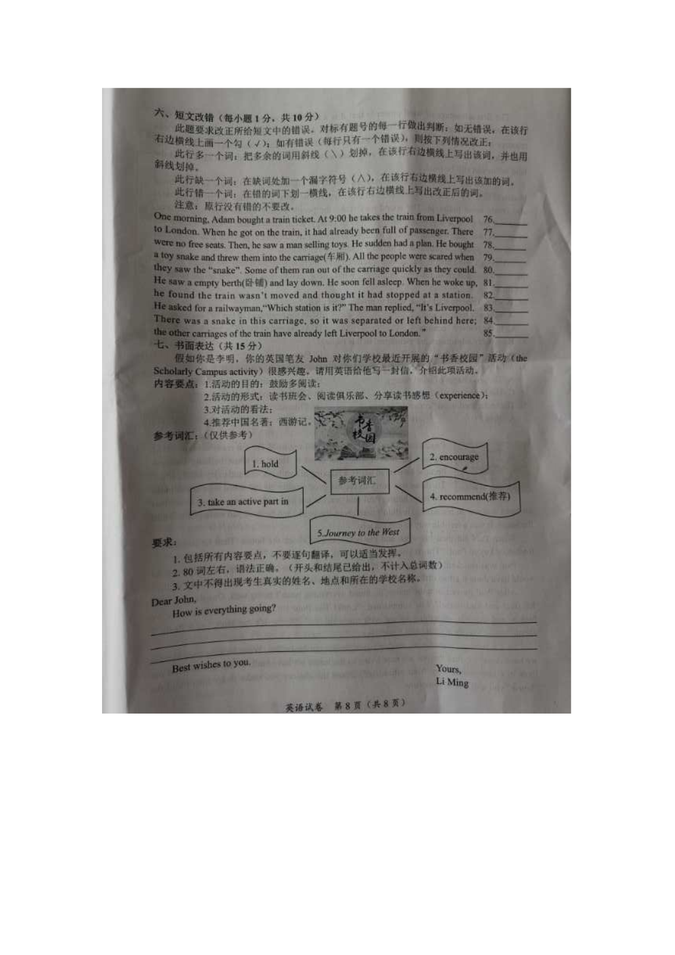 【文档预览】 无忧考网整理发布2020年广西玉林中考英语真题及答案(图片版),前五页预览如下: