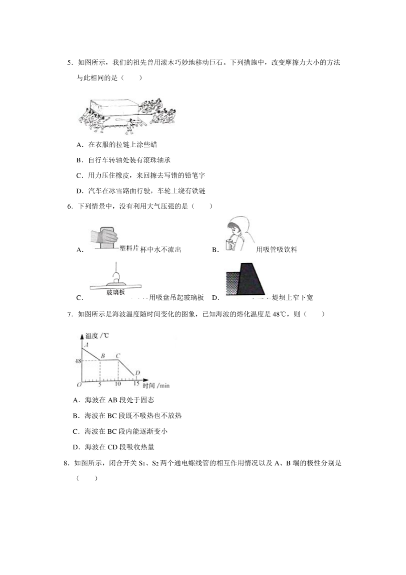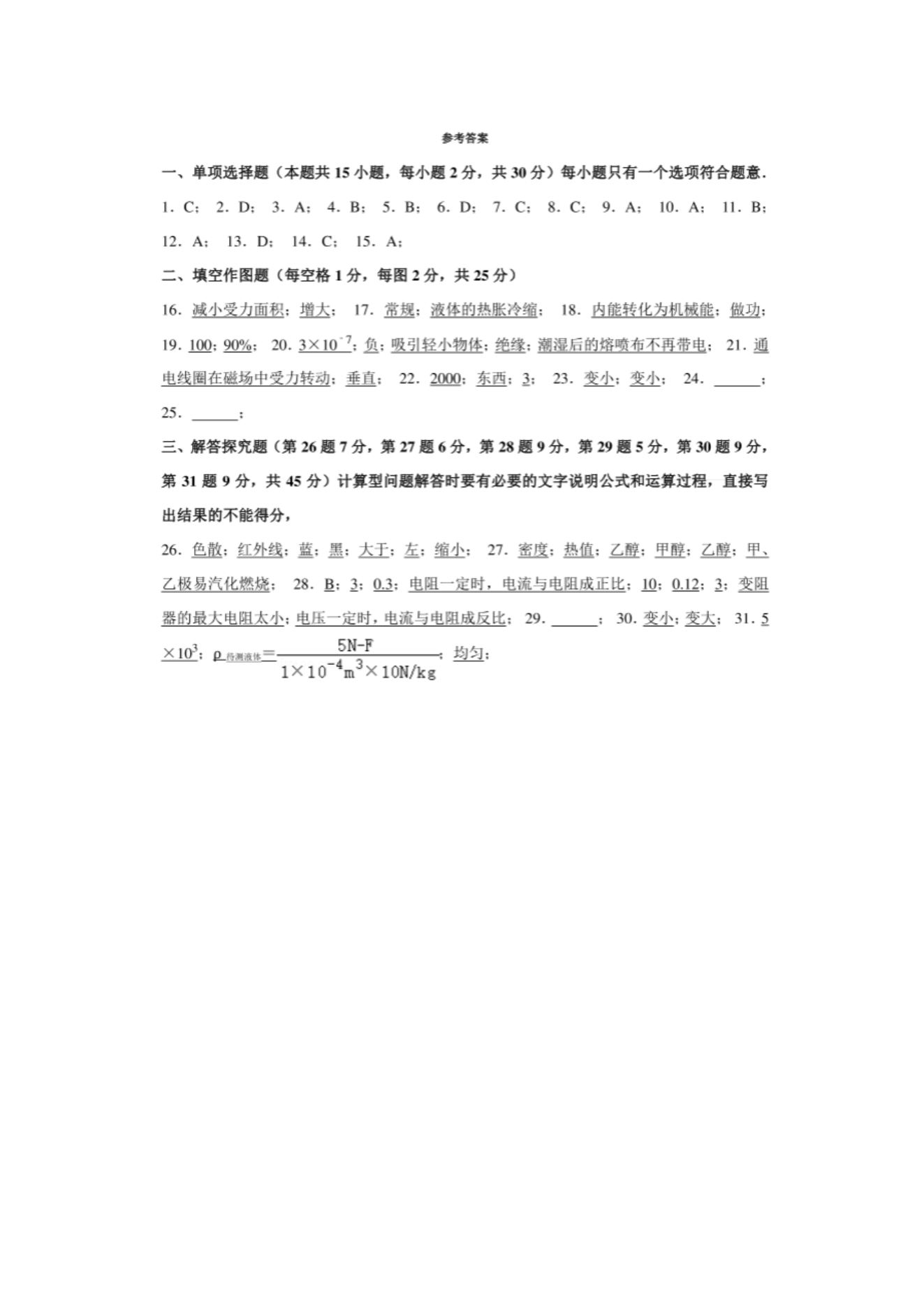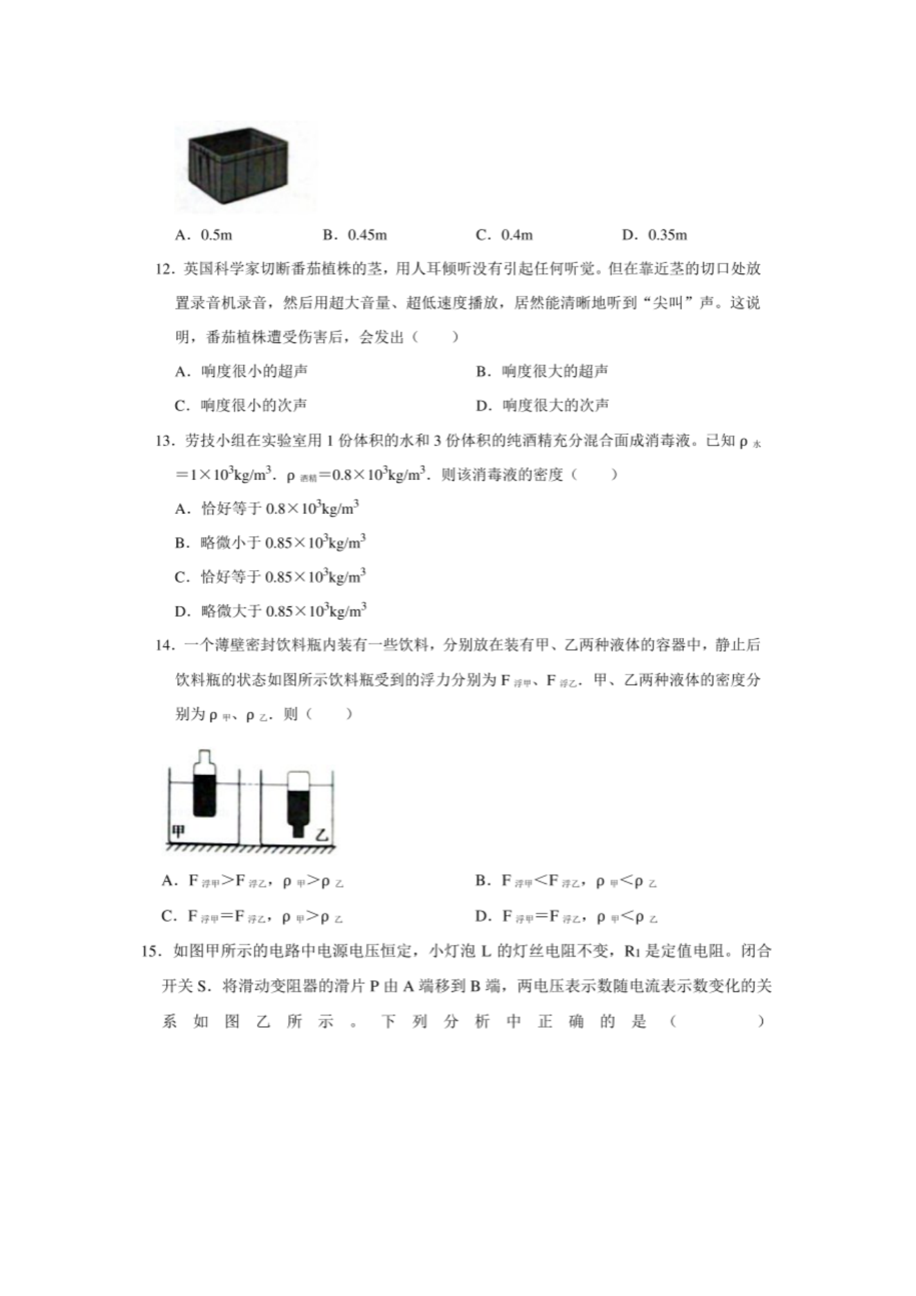 【文档名称】 2020年江苏常州中考物理真题及答案(图片版).doc