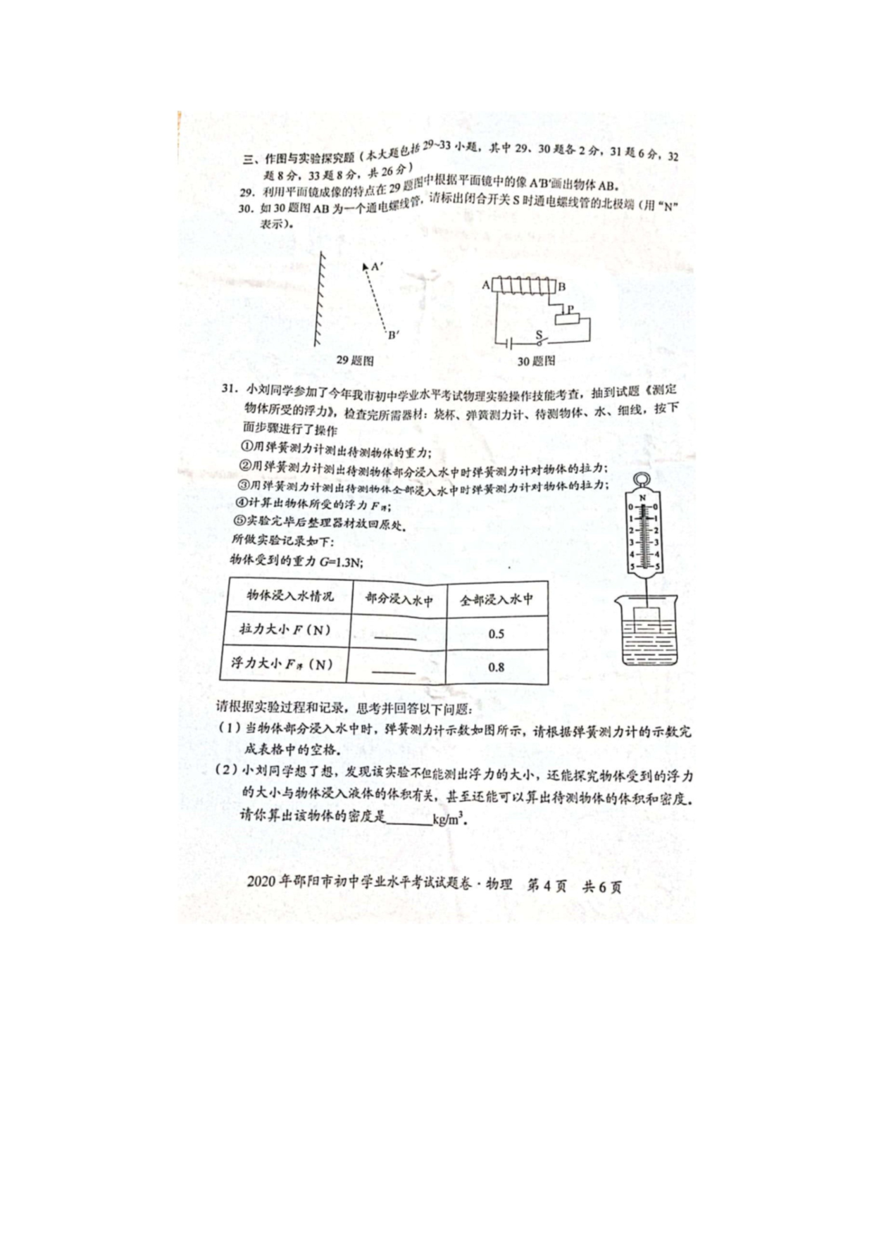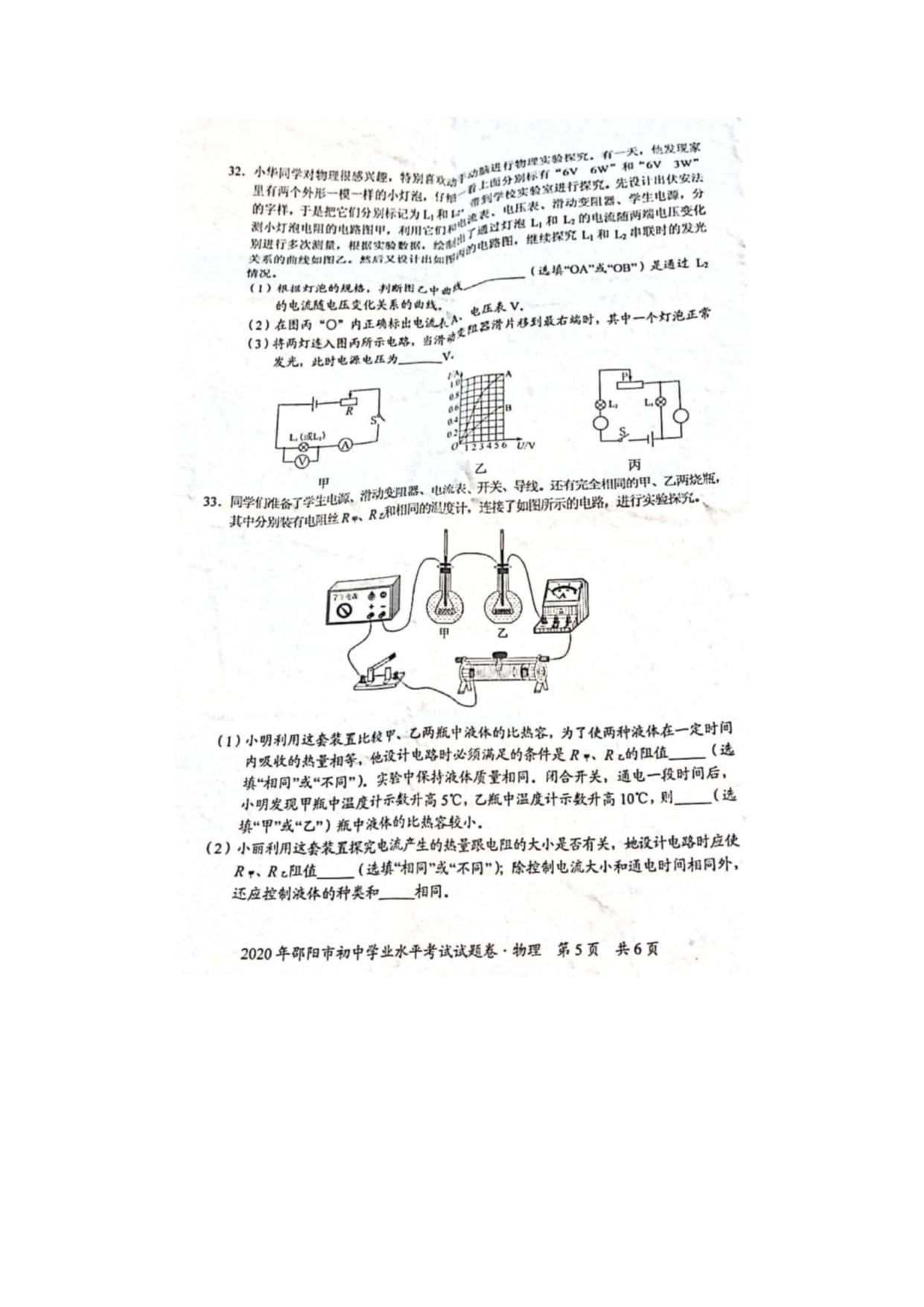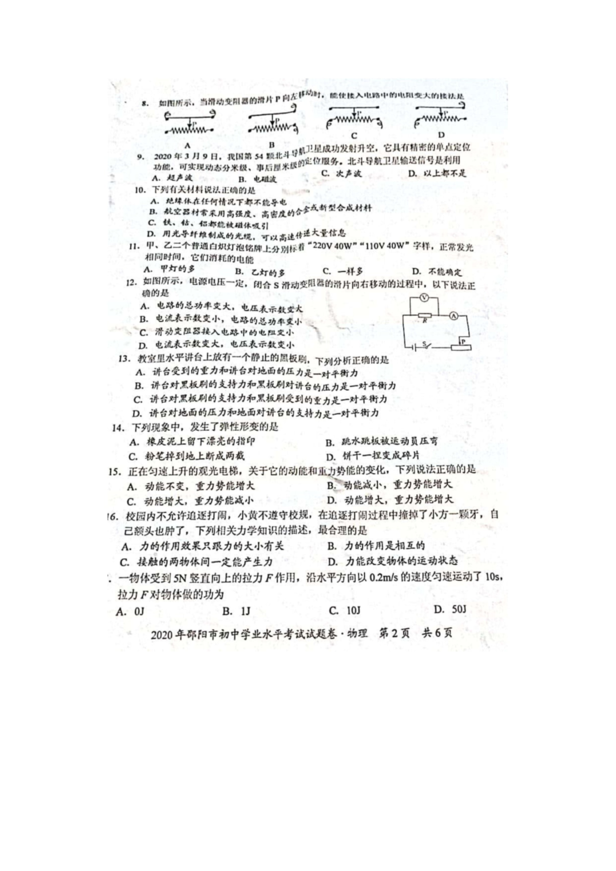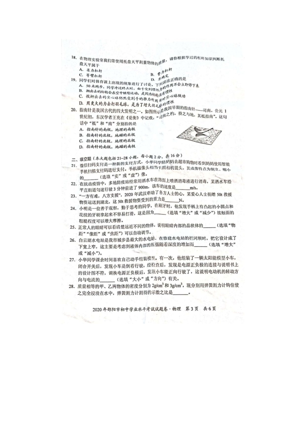 【文档名称】 2020年湖南邵阳中考物理试题及答案(图片版).doc